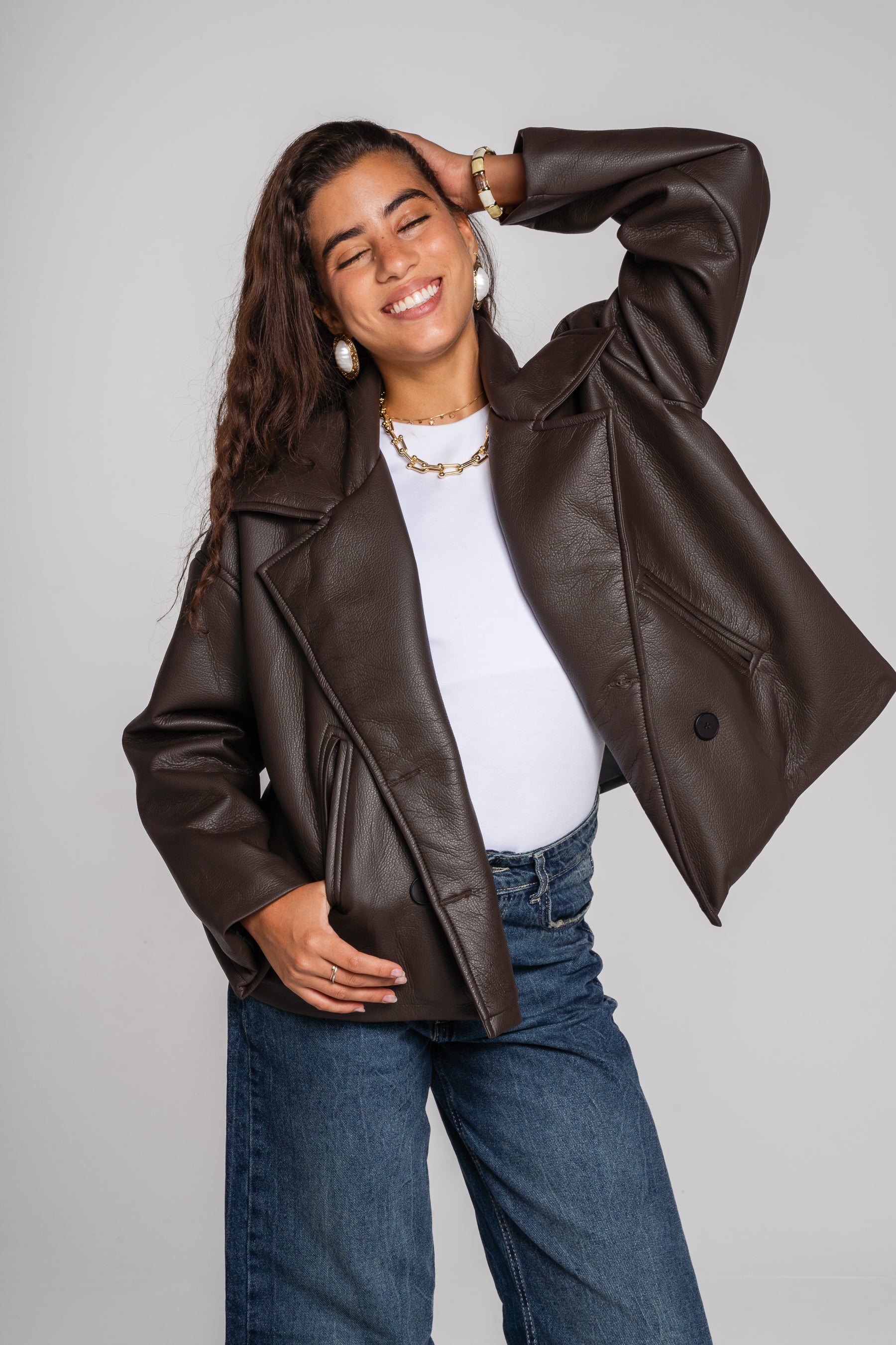 For when the clock hits five and the fun begins. This leather jacket is the finishing touch for your elevated, after-hours look. Refined leather jacket with a textural finish.