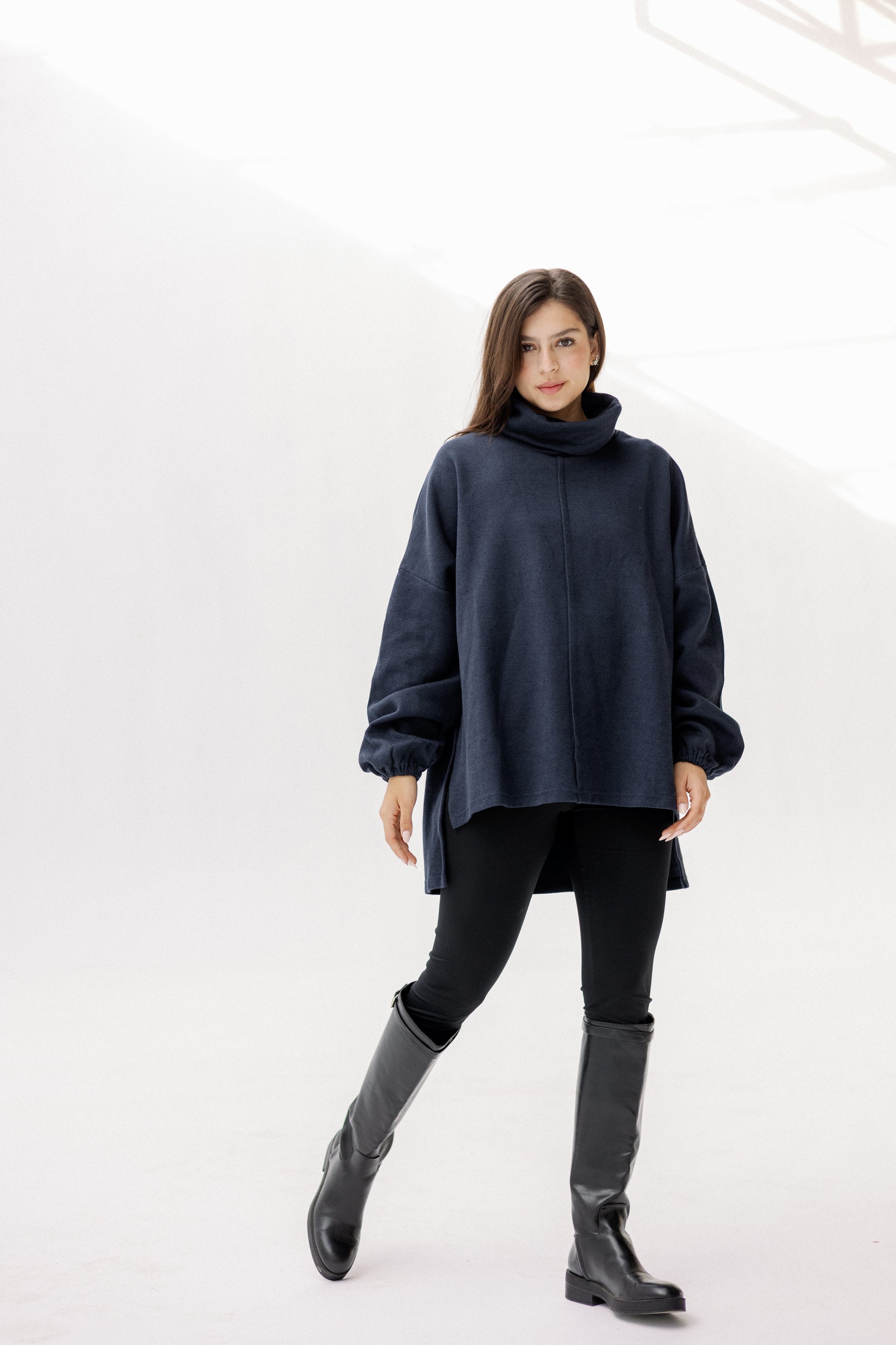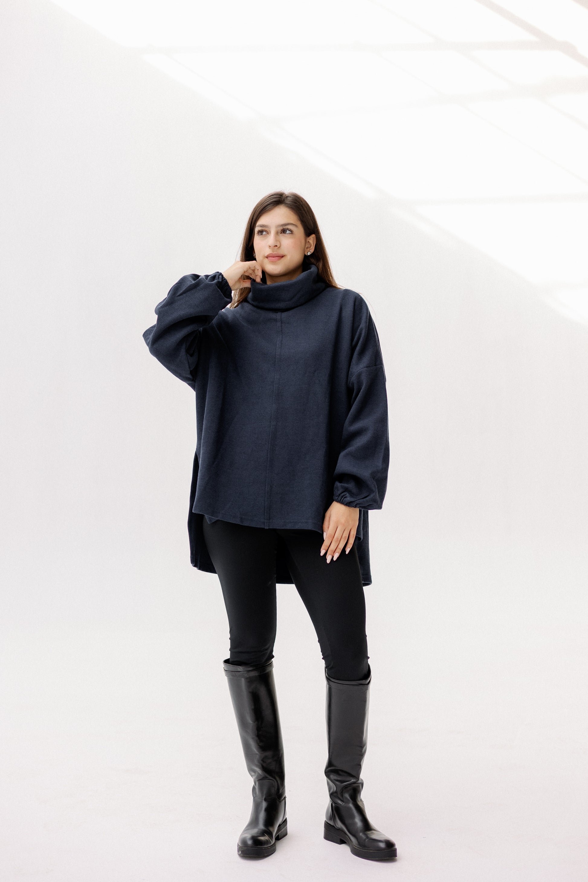 A timeless wardrobe essential with a modern silhouette. This soft turtleneck pullover features a relaxed fit and cozy feel, designed for effortless layering. Available in rich, versatile tones that pair seamlessly with any winter wardrobe. Available in: Burgundy, Olive, Black & Navy.