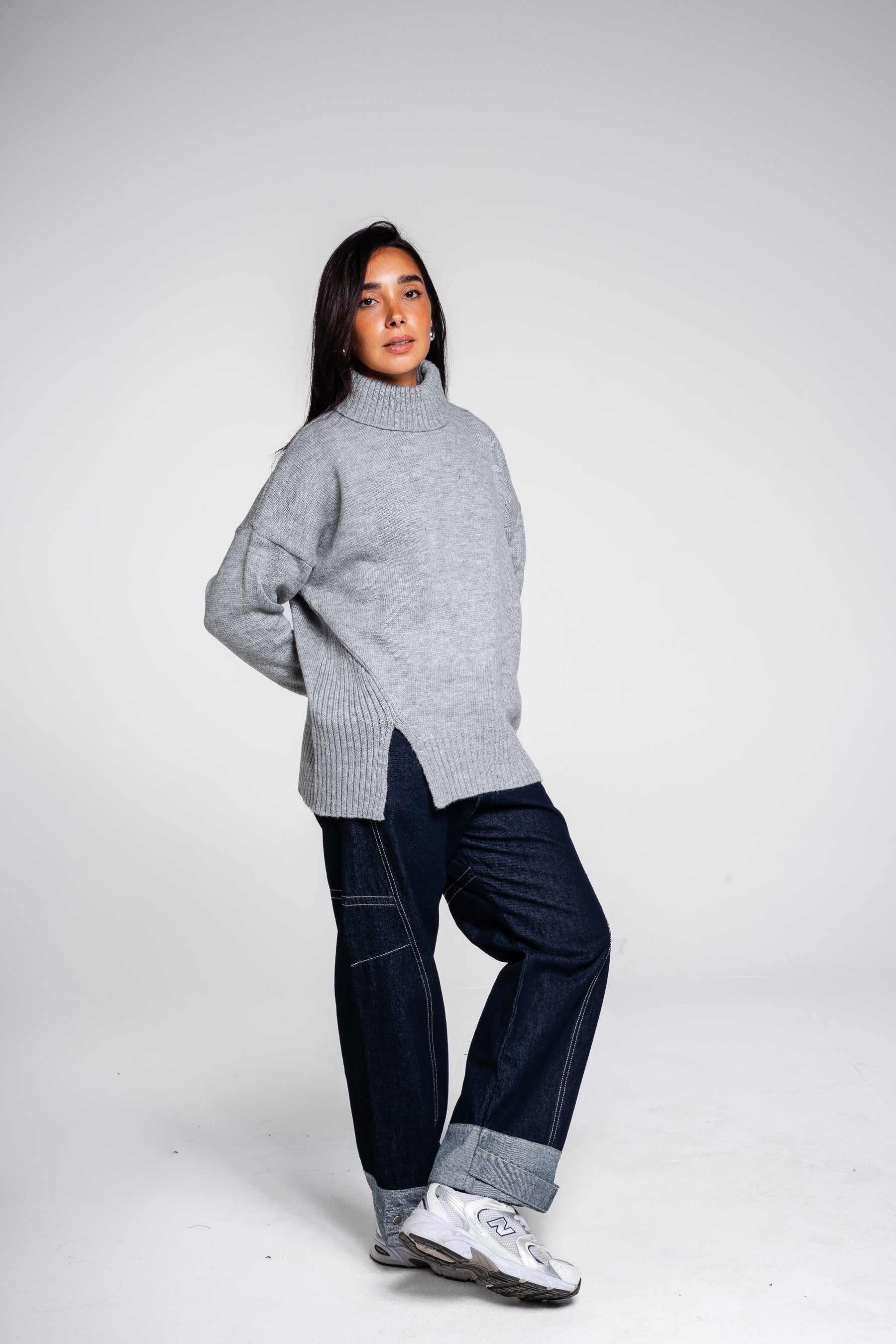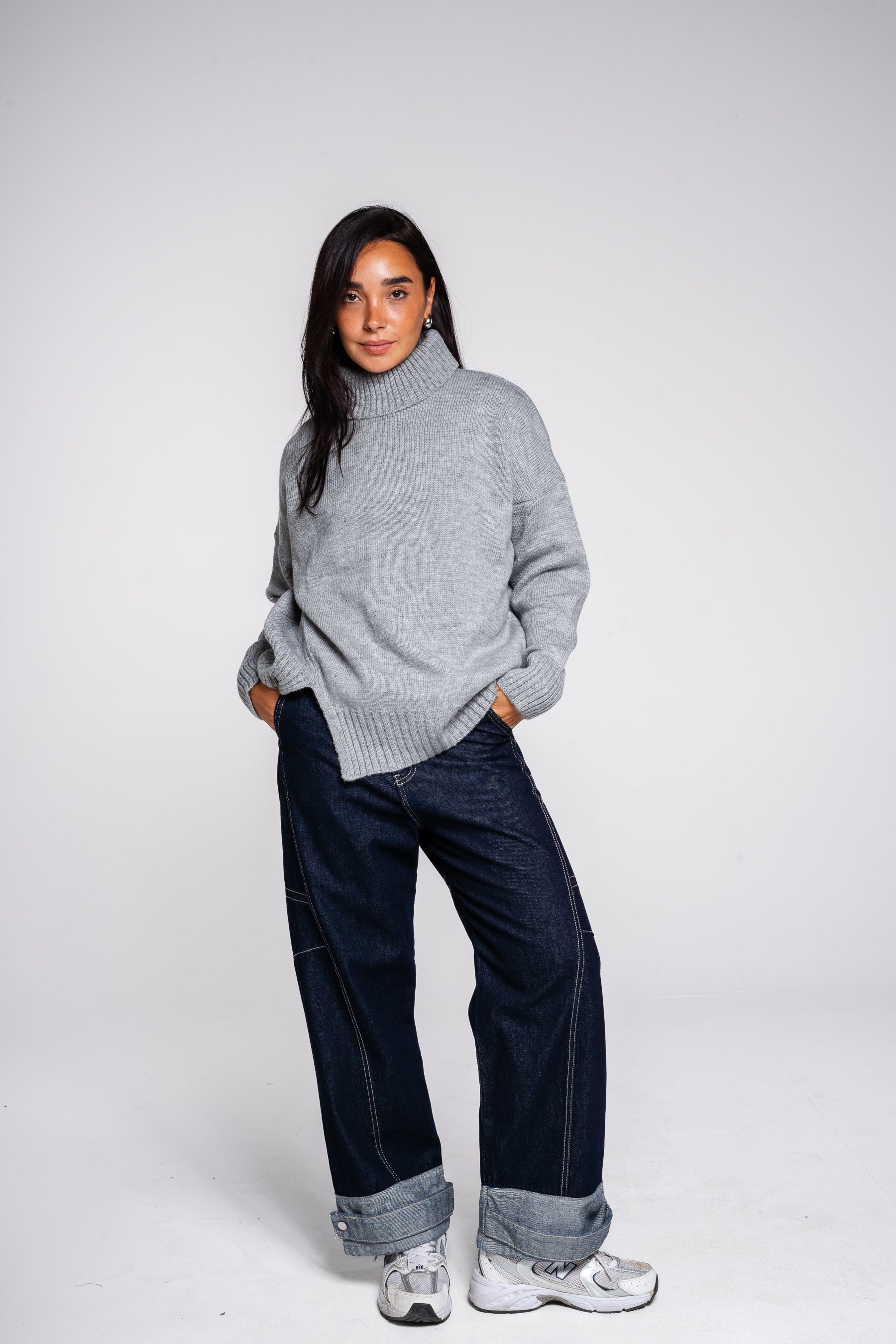 This oversized knit is your official pass to maximum, guilt-free comfort. High-neck, relaxed fit pullover with a soft, cozy knit.