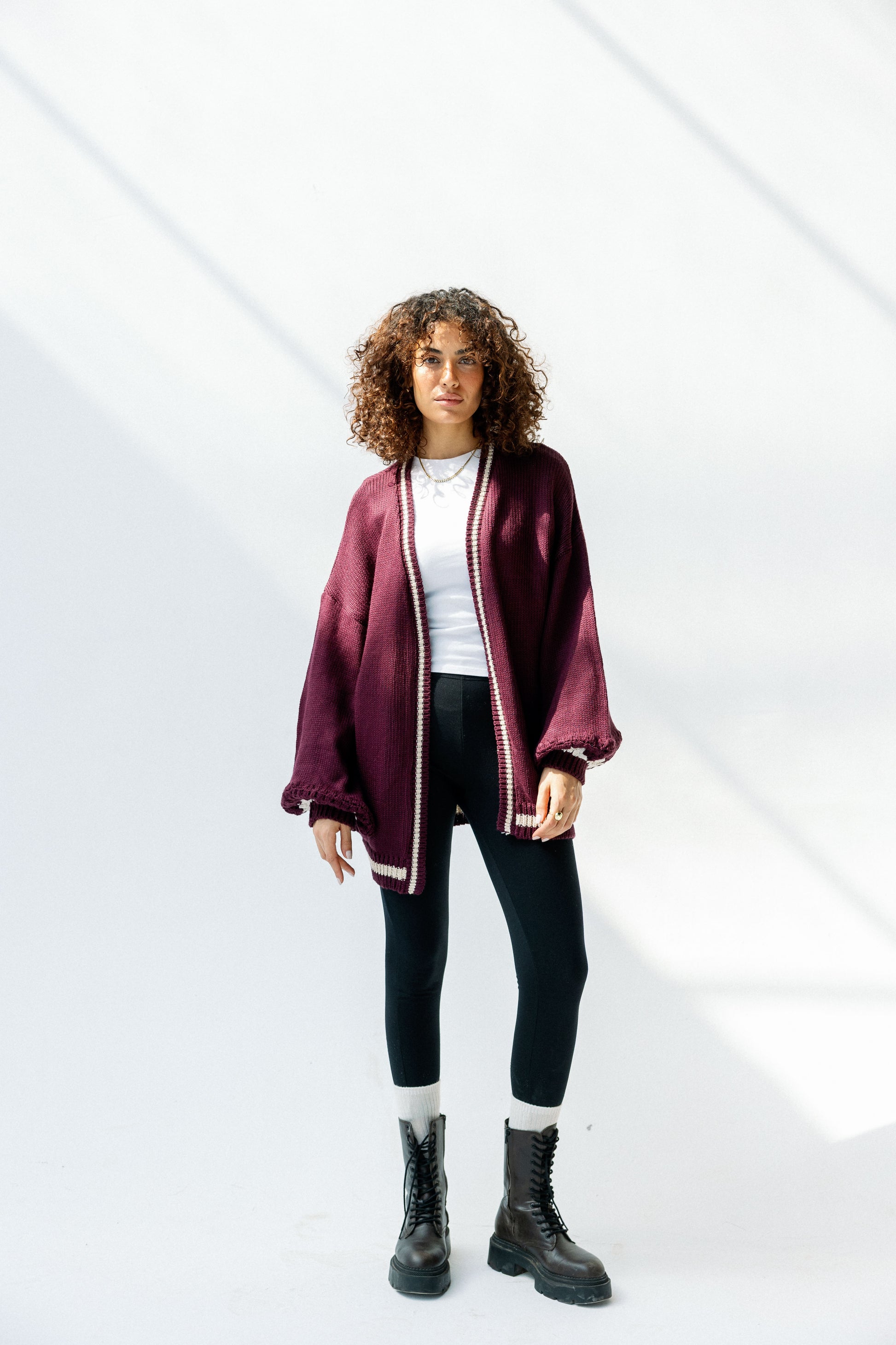 The Aura Cardigan in burgundy