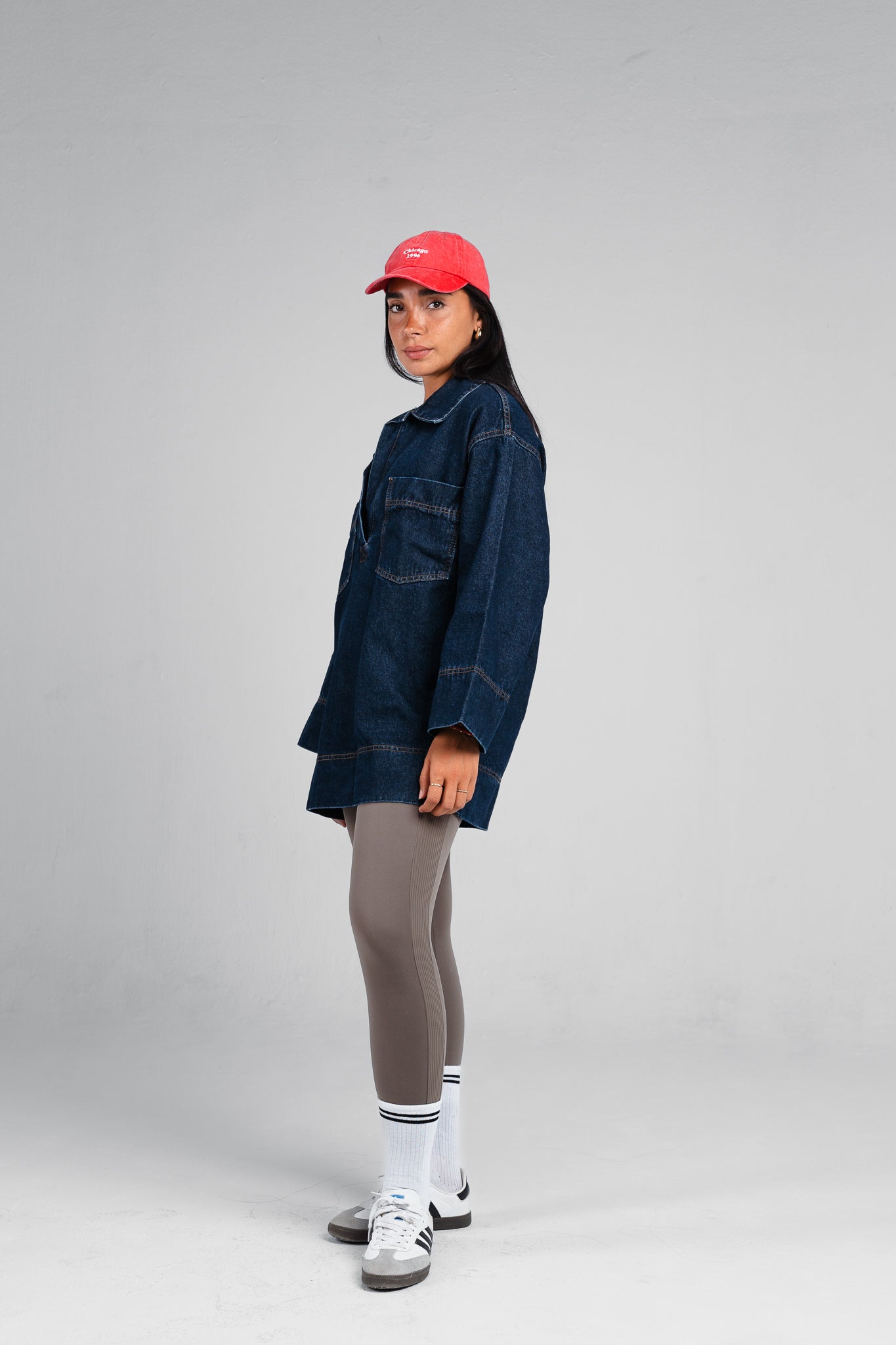This oversized denim shirt is designed for effortless style. The relaxed silhouette and