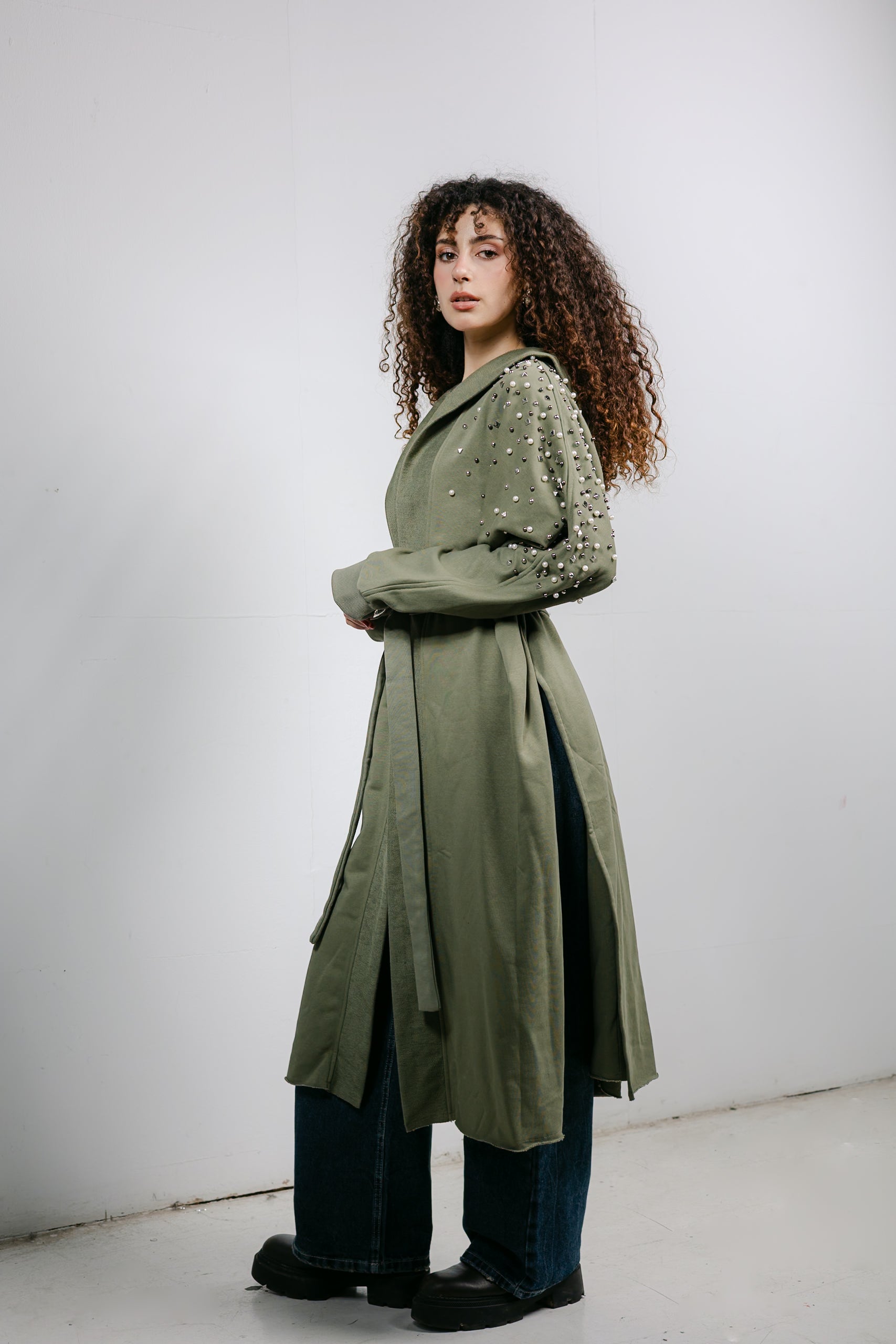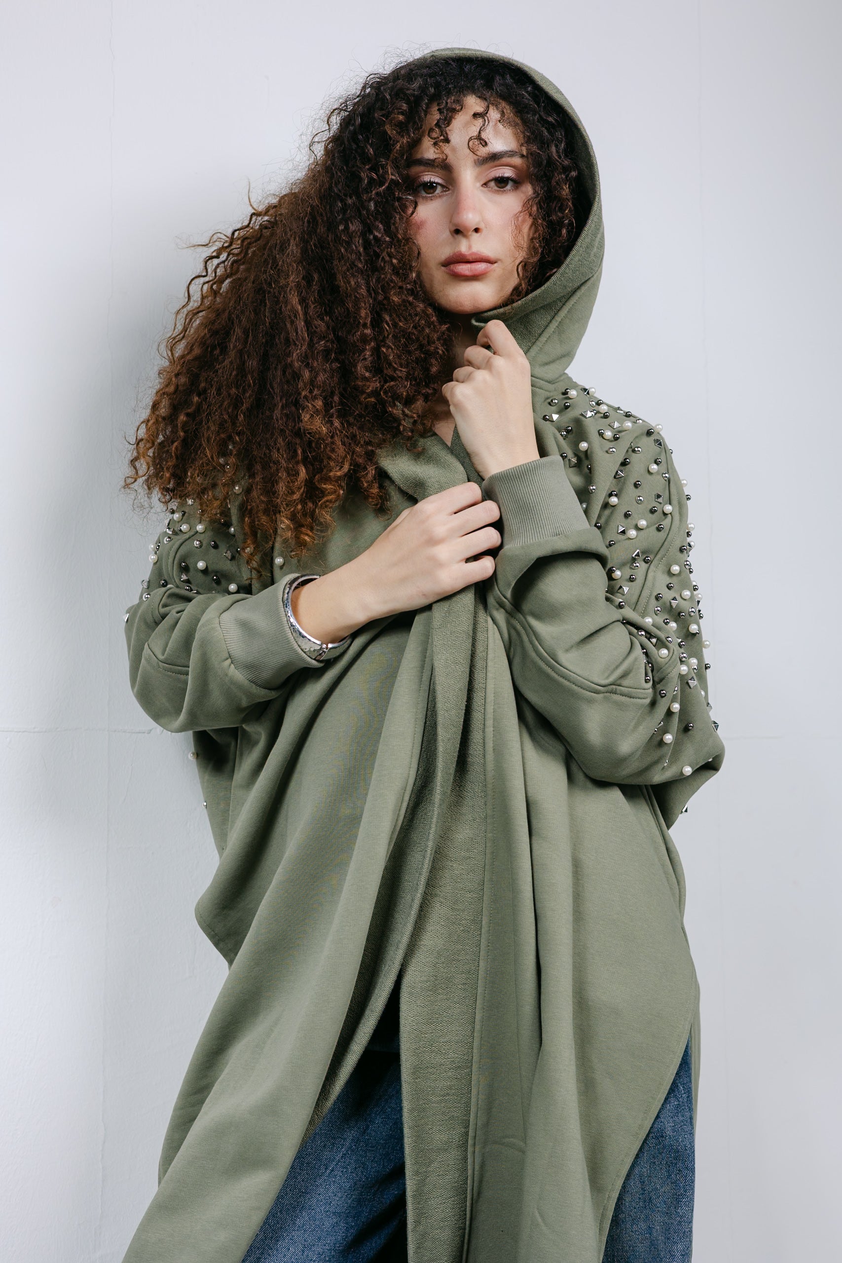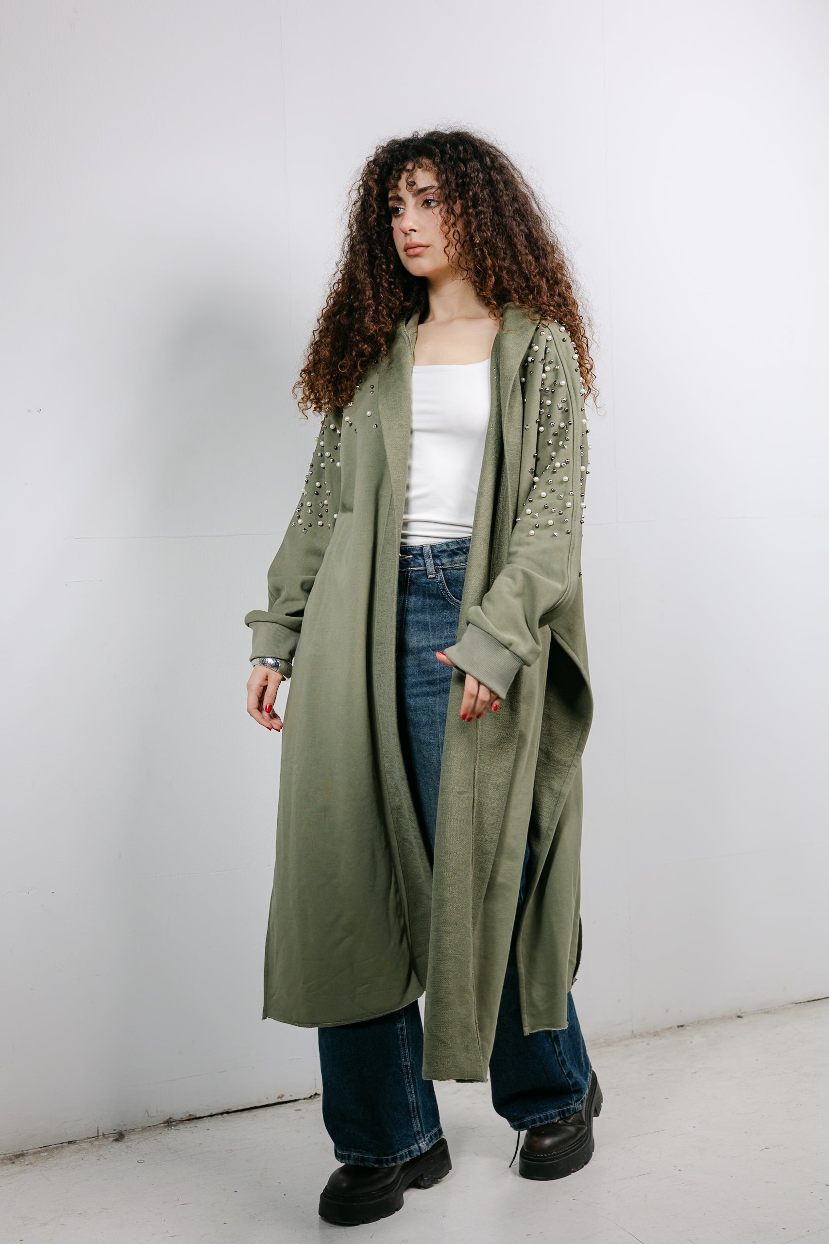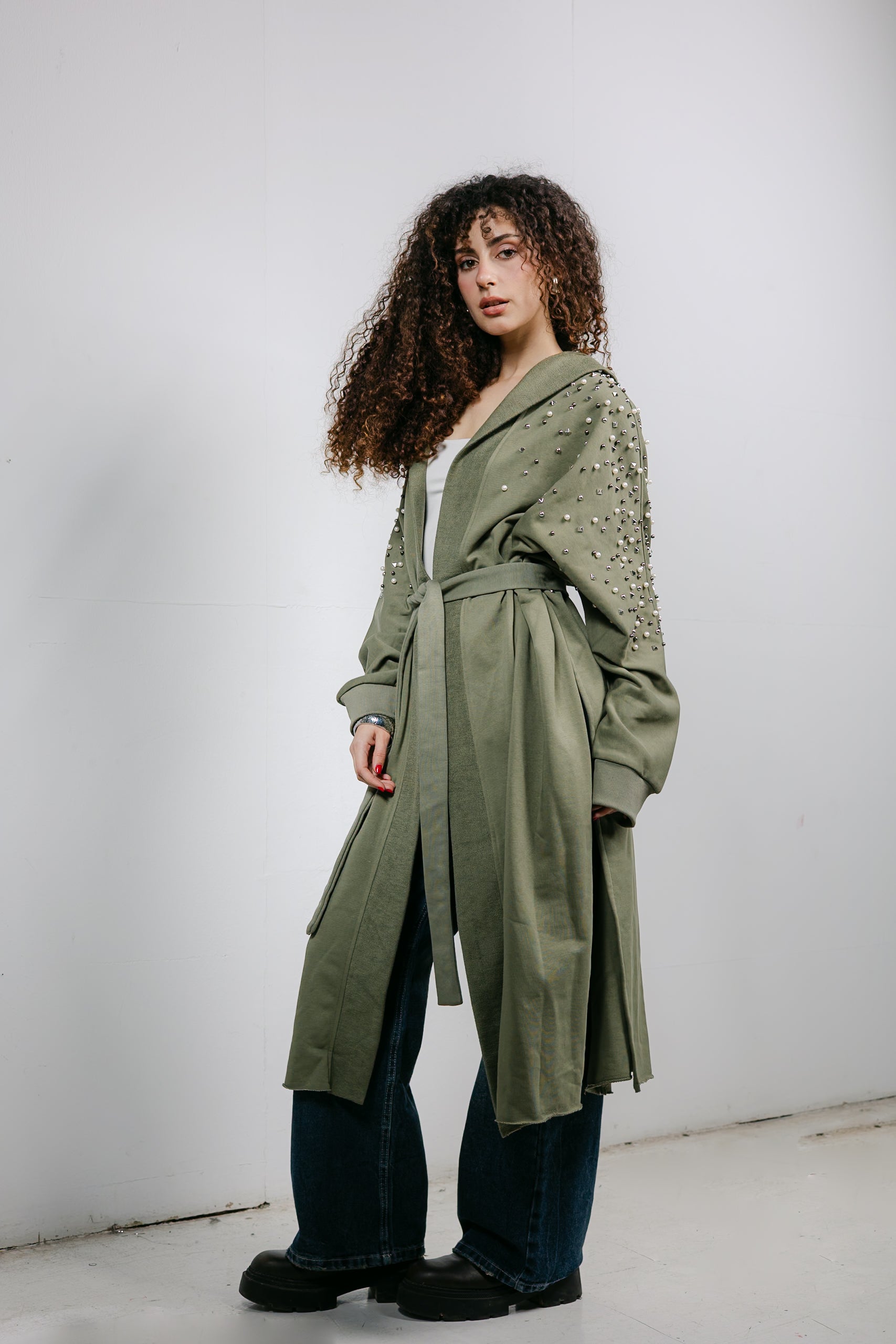 The ultimate elegant styling. This cardigan is trimmed with beautiful pearl and studded details along the shoulders, offering a classic, feminine look that pairs perfectly with denim or skirts.