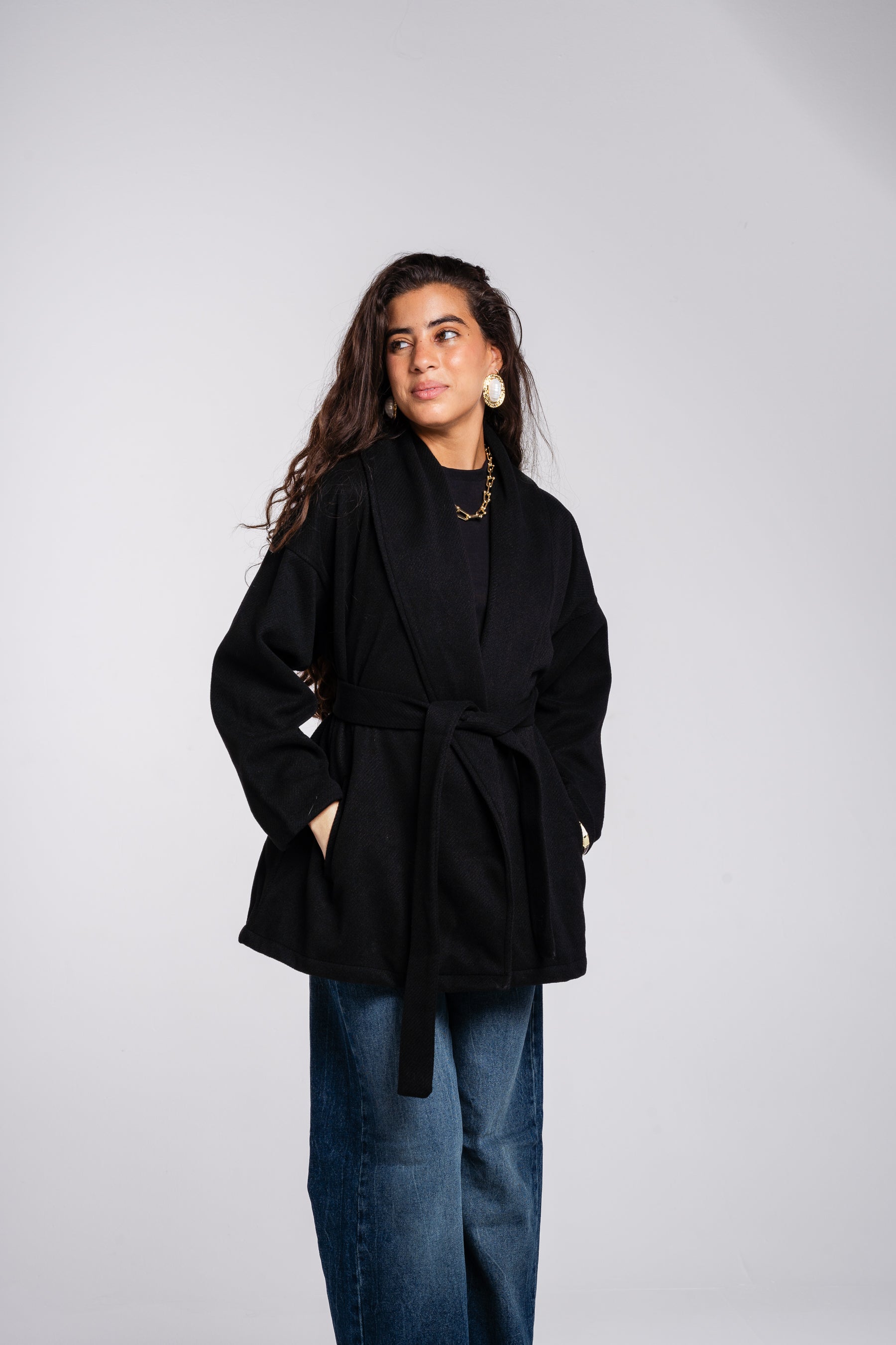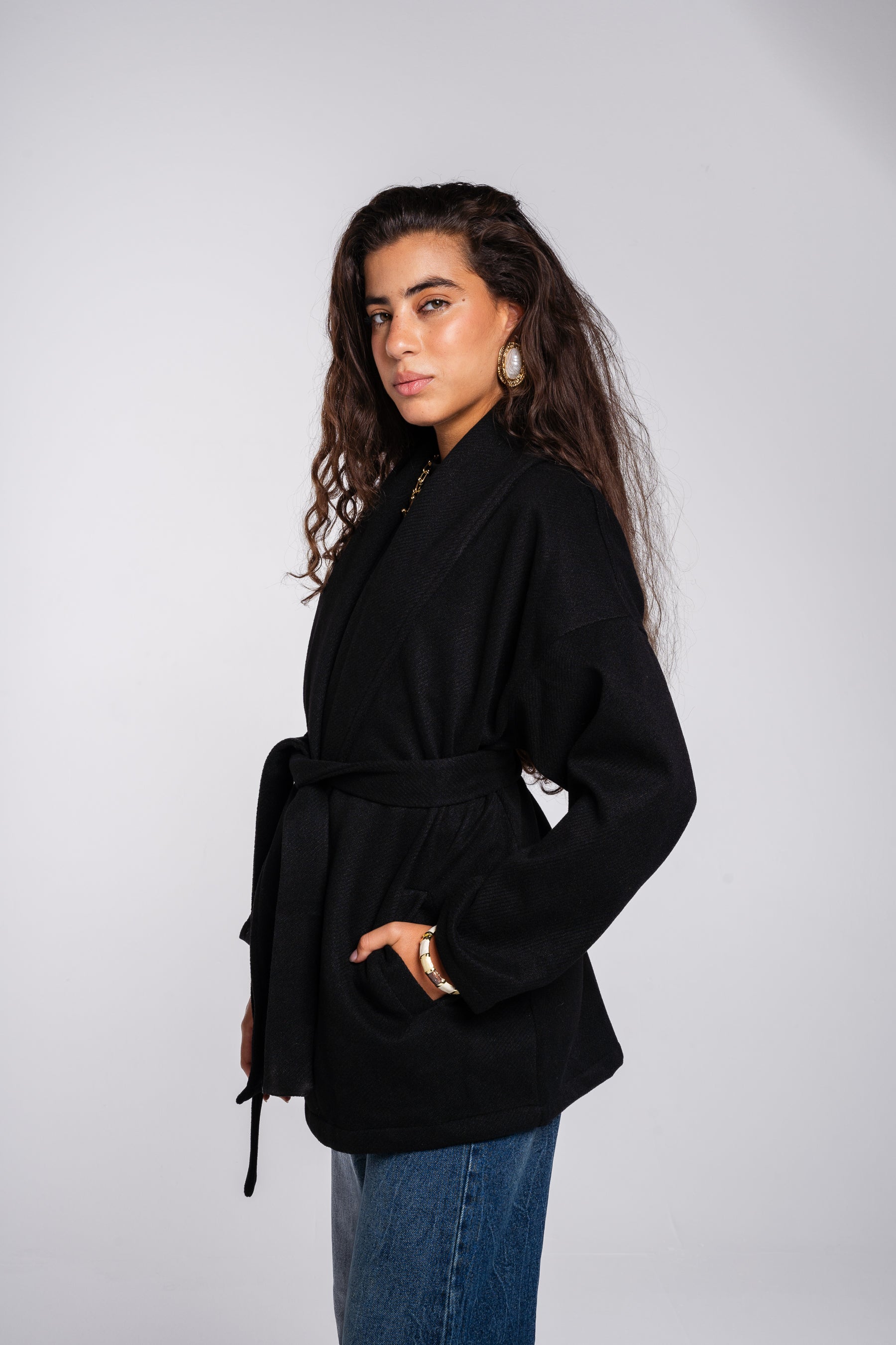 That perfect layer you just know you’ll wear forever. It has a beautiful, elegant flow that just makes everything else look better. Clean-line gokh jacket with an elegant drape.
