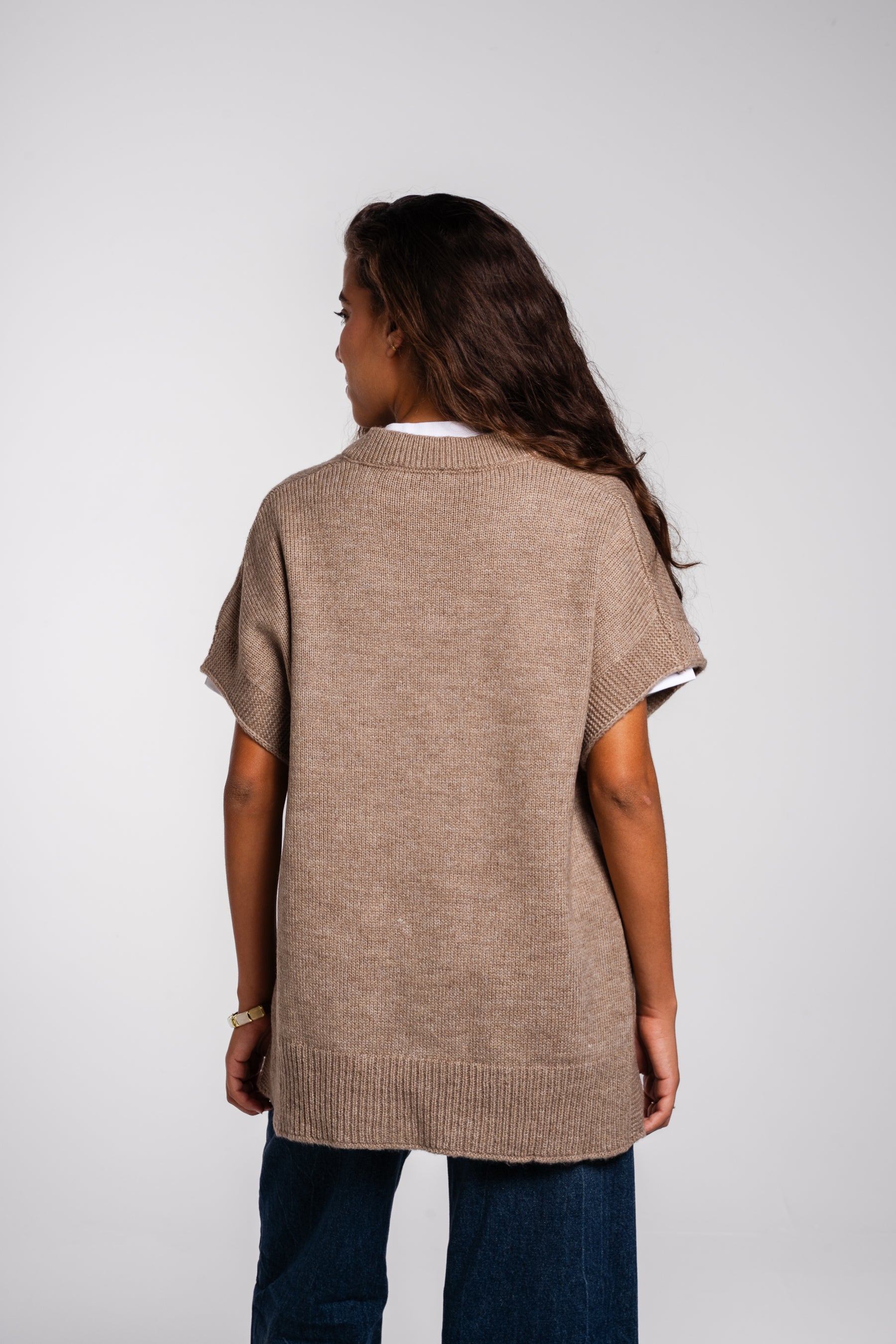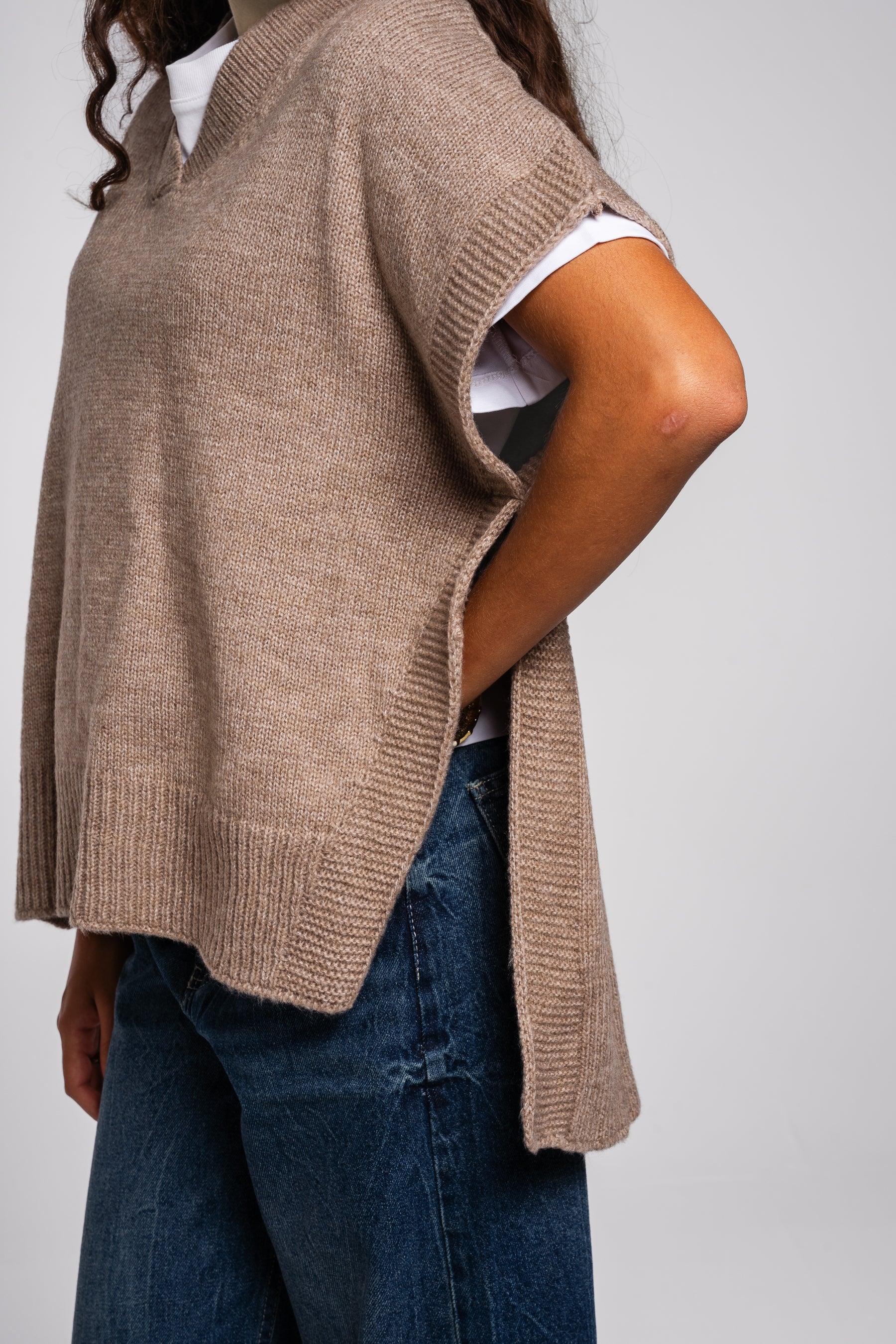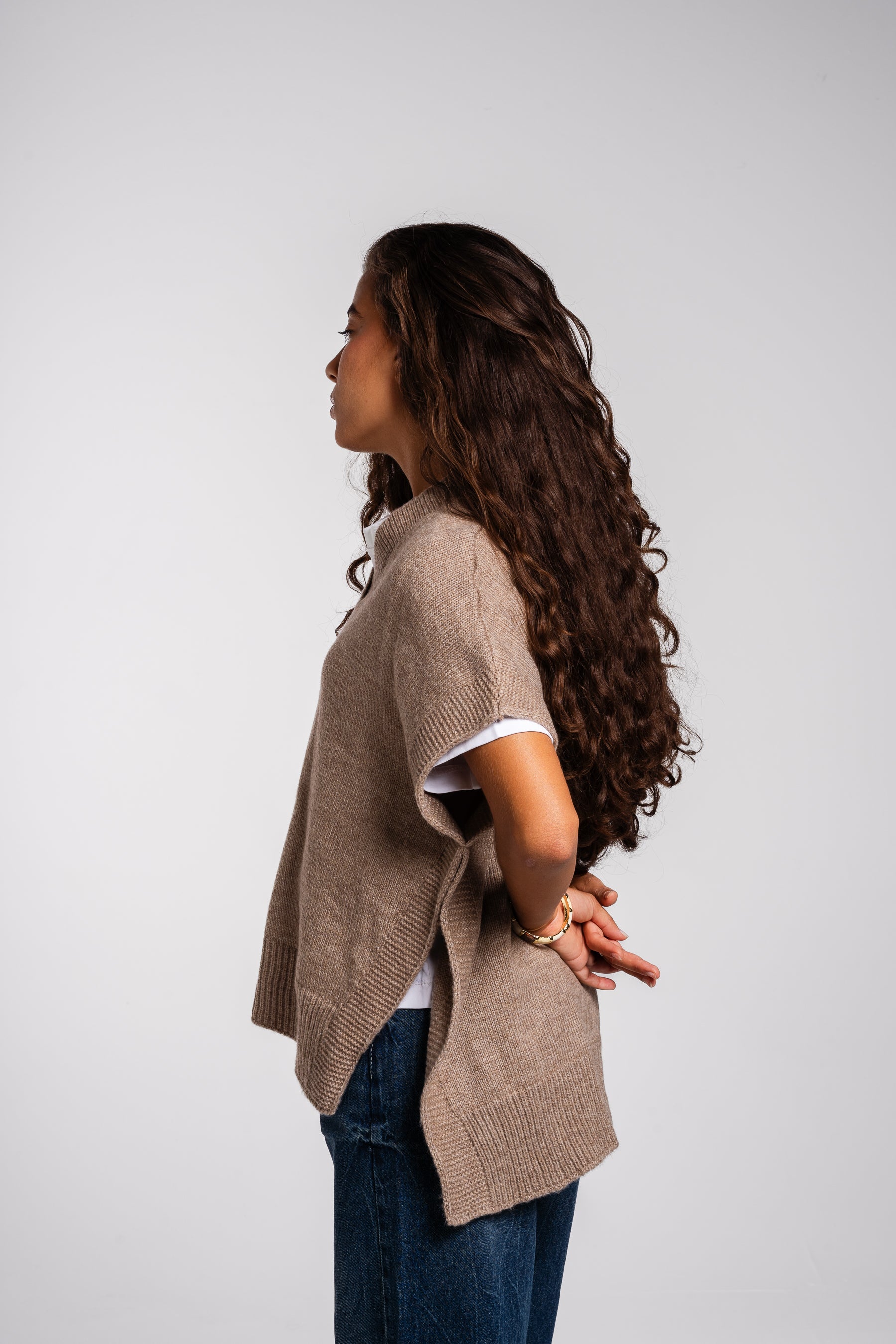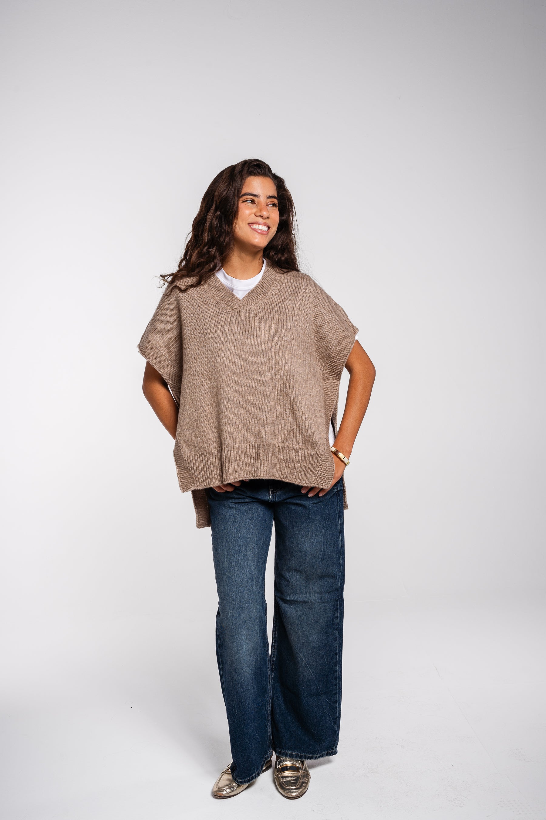 The one piece that makes any outfit look intentional. Perfect for those nights that start early and end late. Relaxed, oversized knit vest with an easy drape.