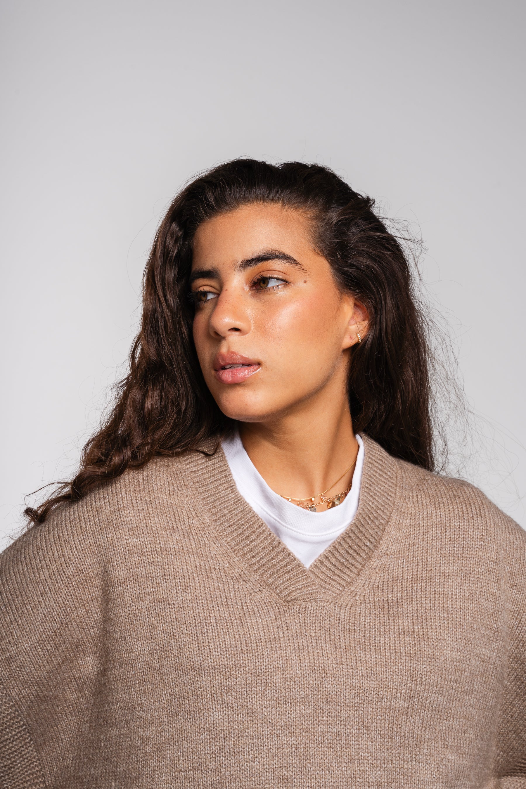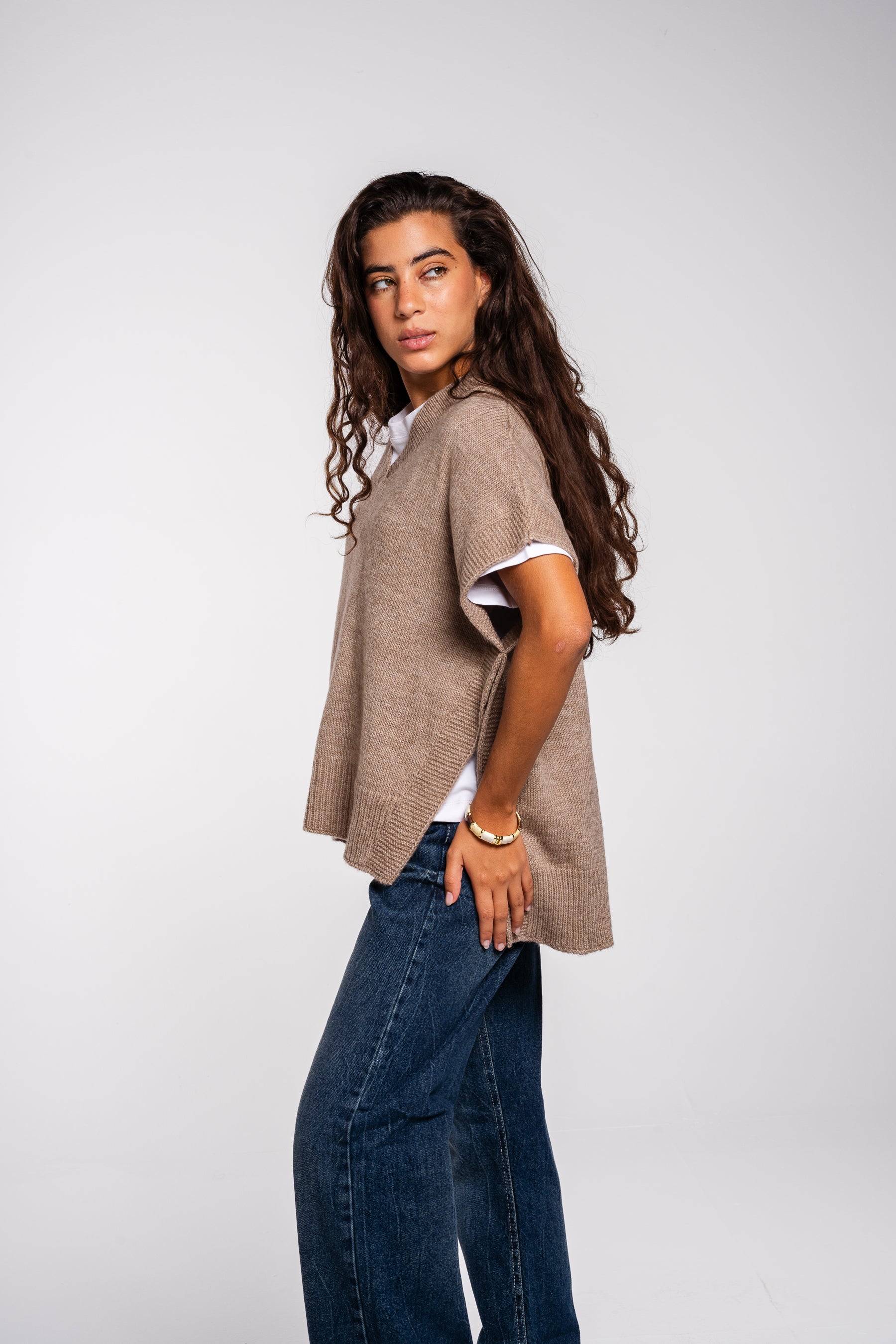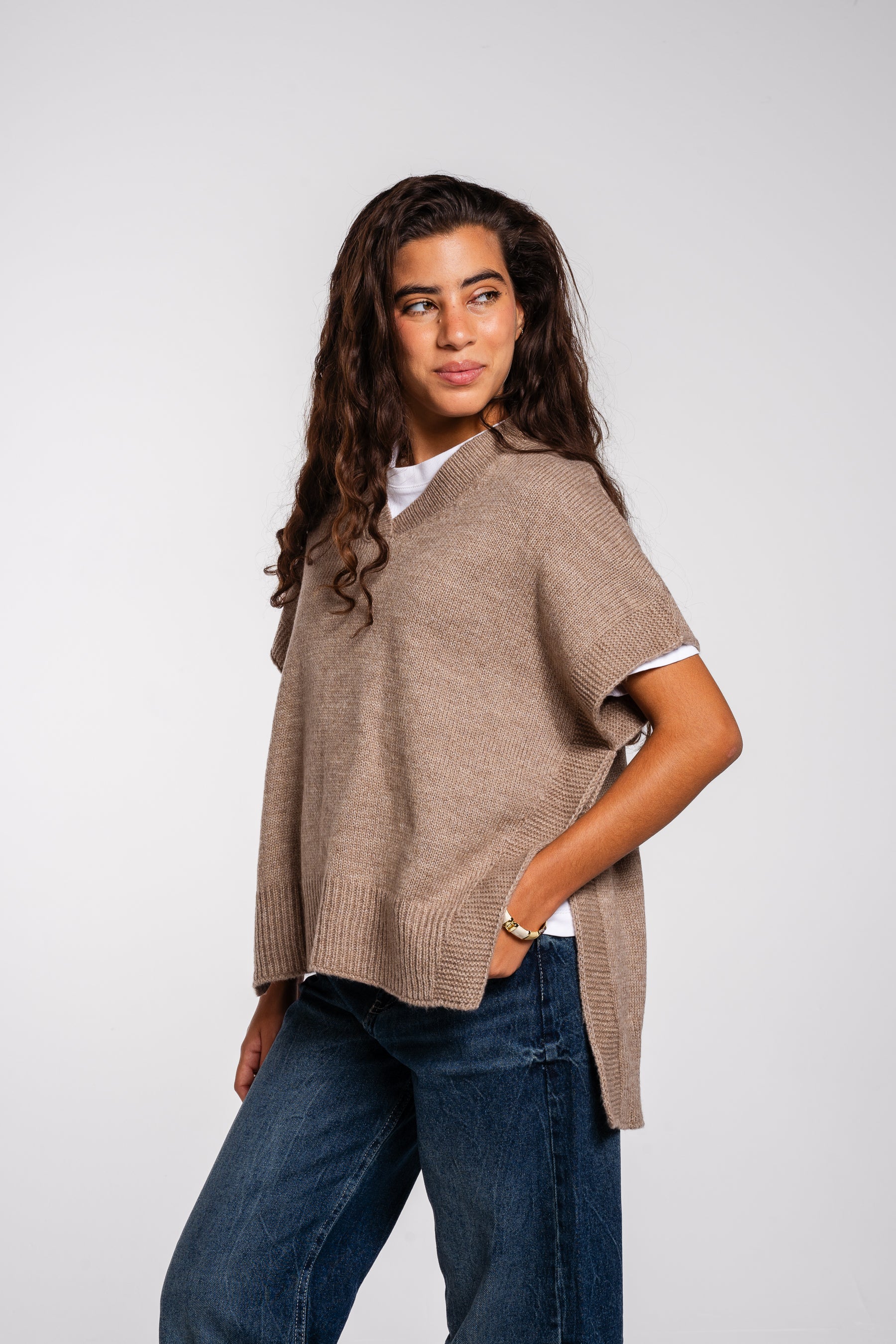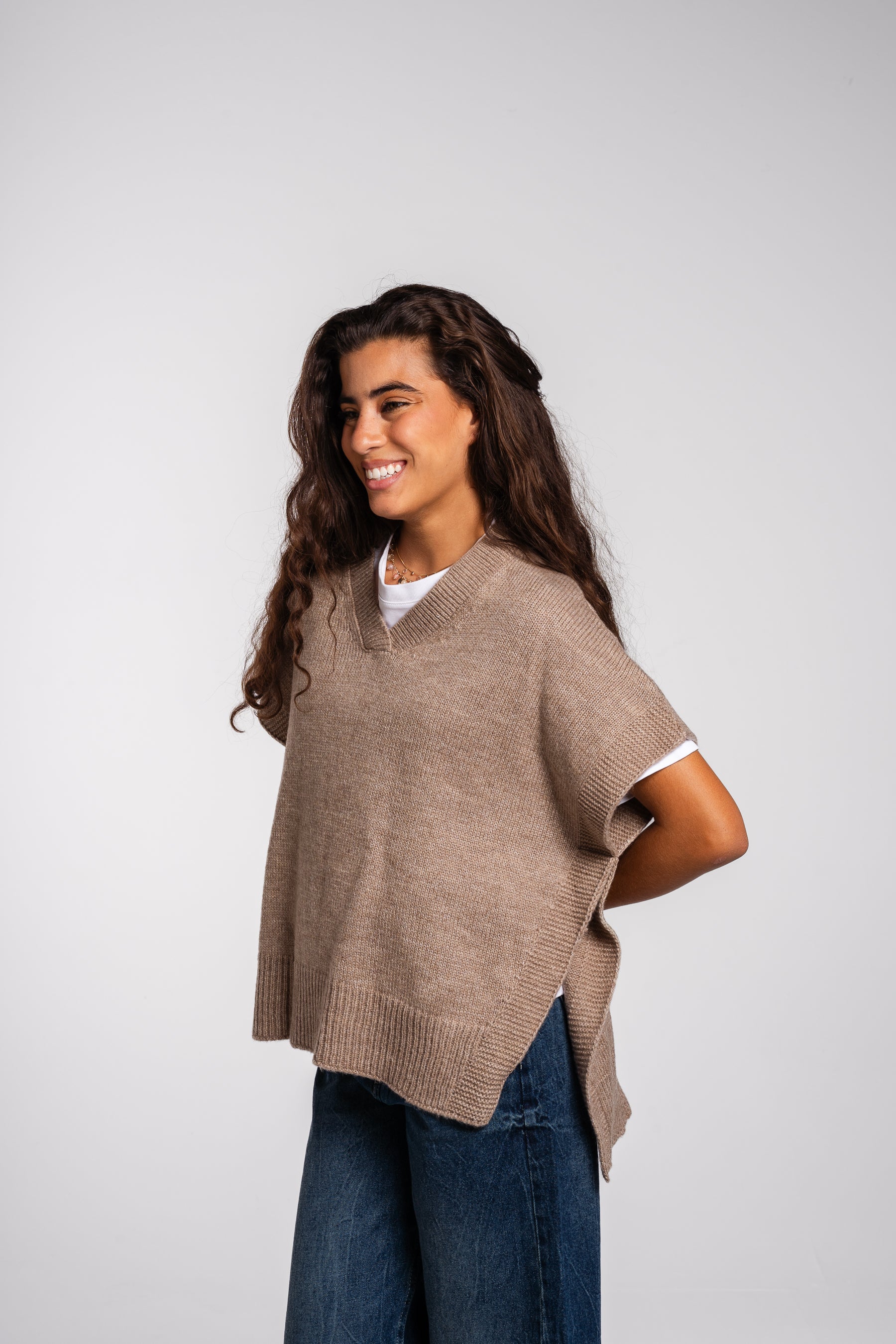 The one piece that makes any outfit look intentional. Perfect for those nights that start early and end late. Relaxed, oversized knit vest with an easy drape.