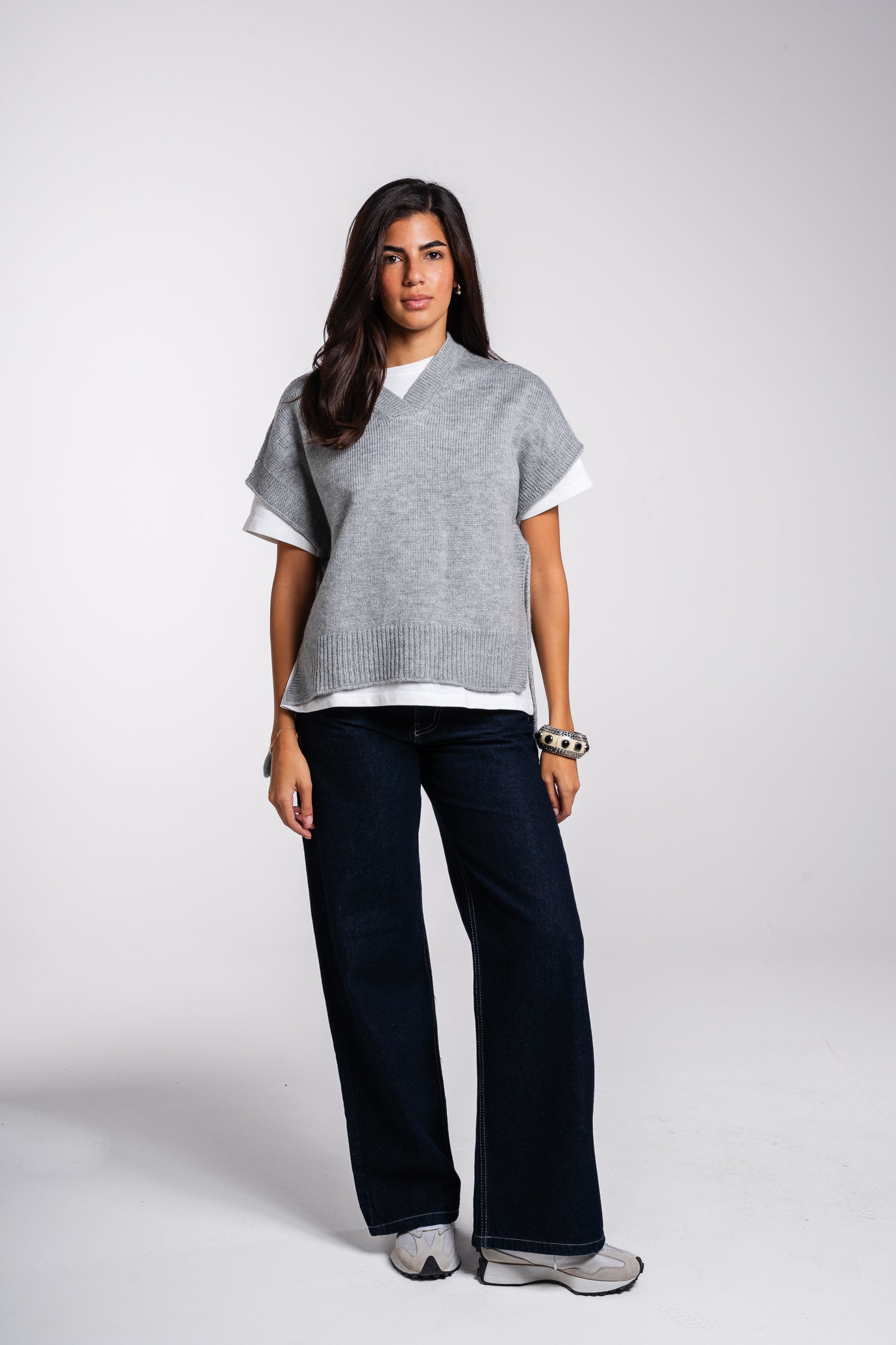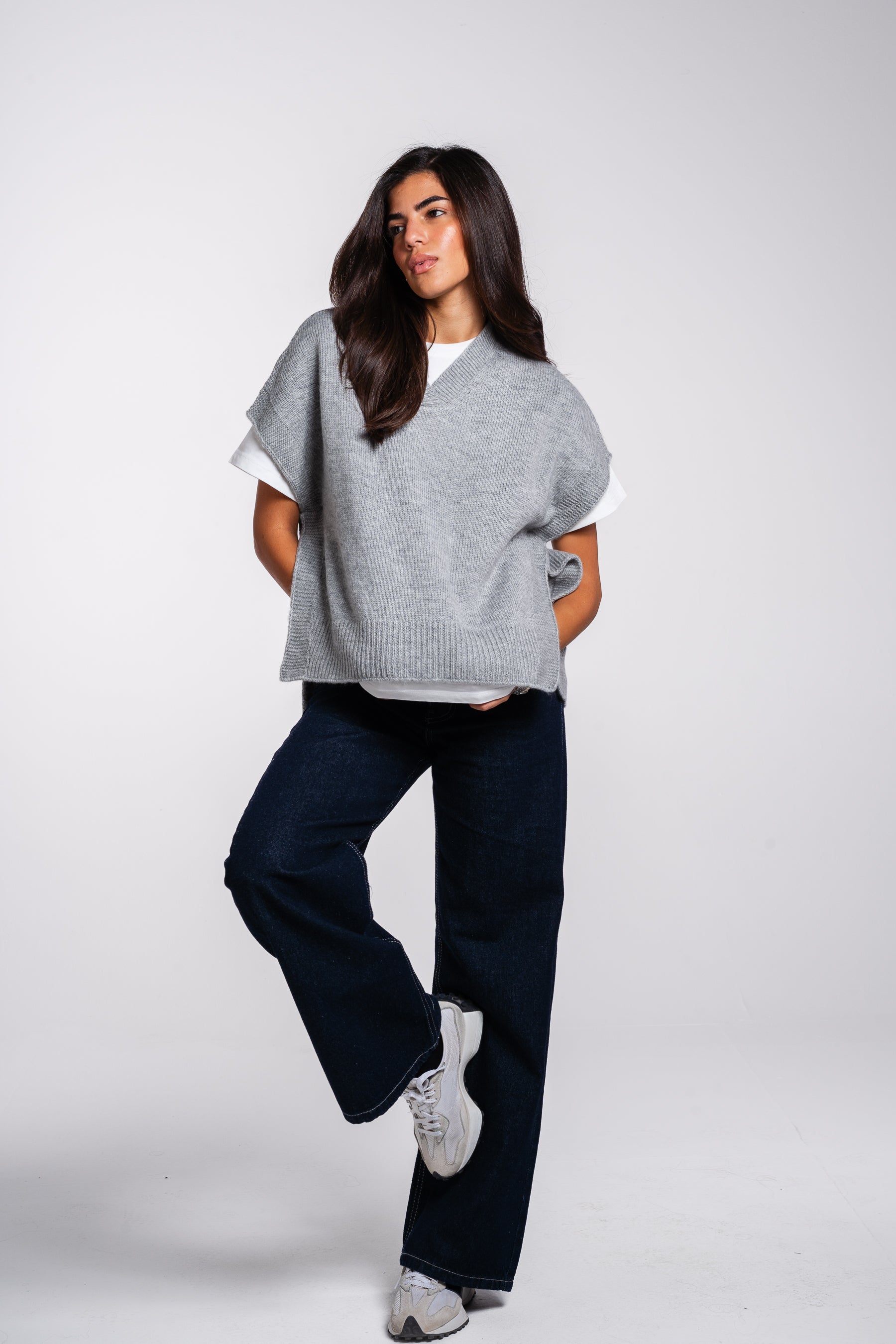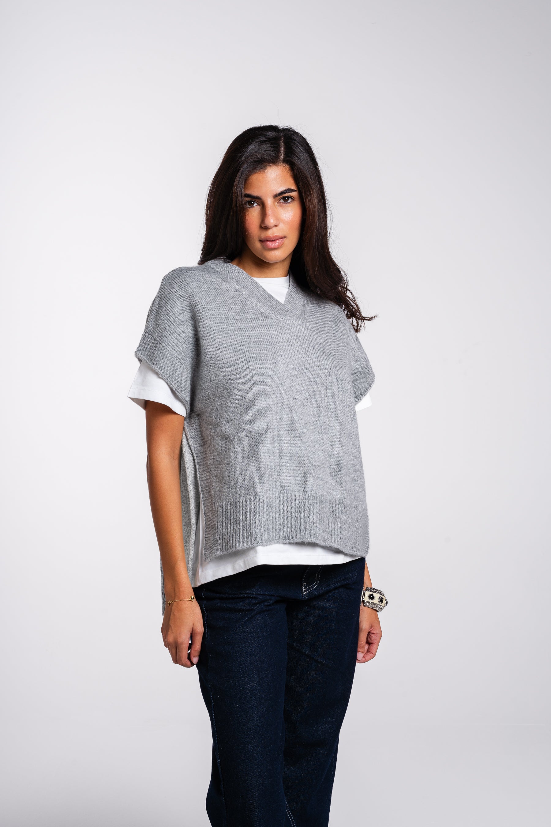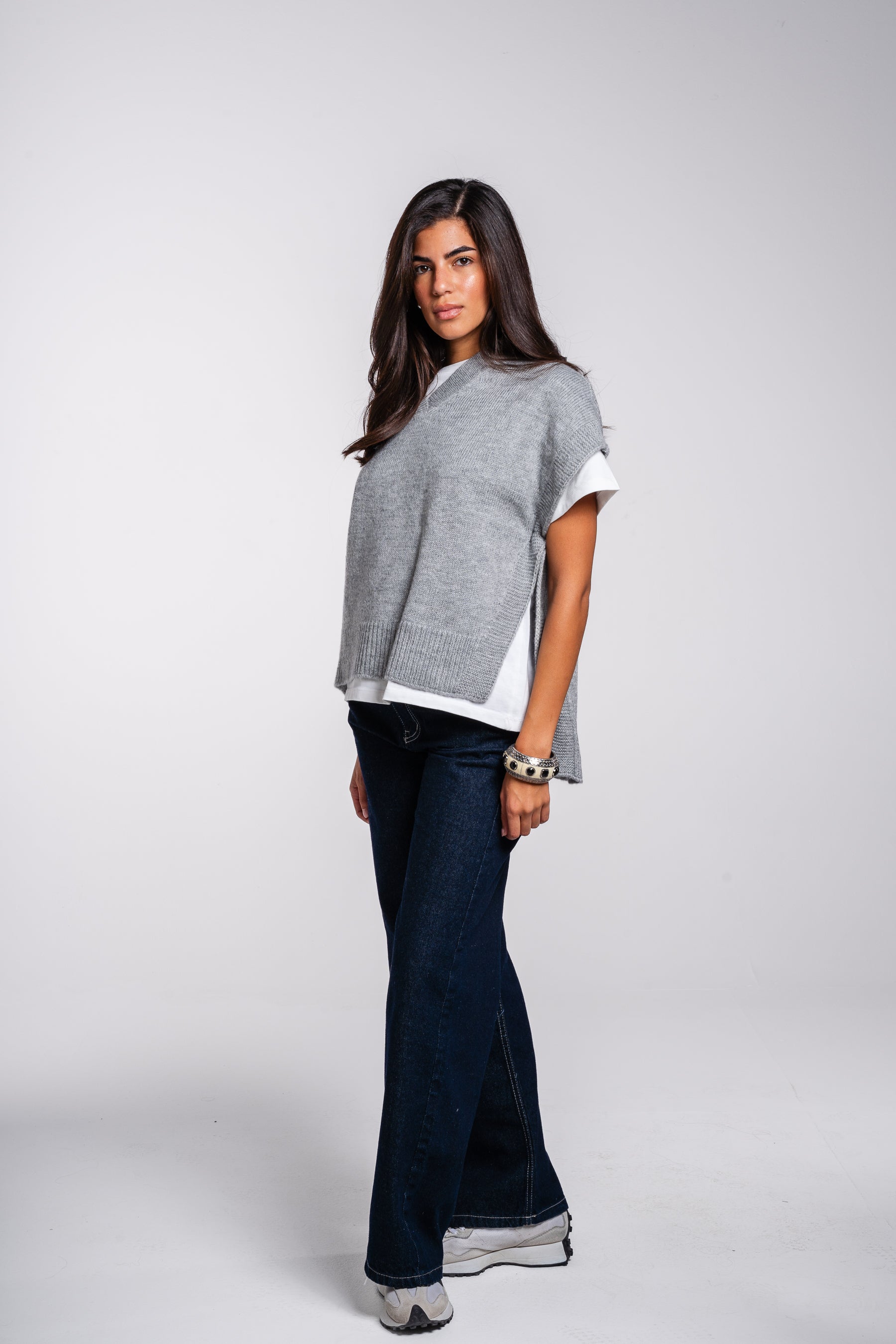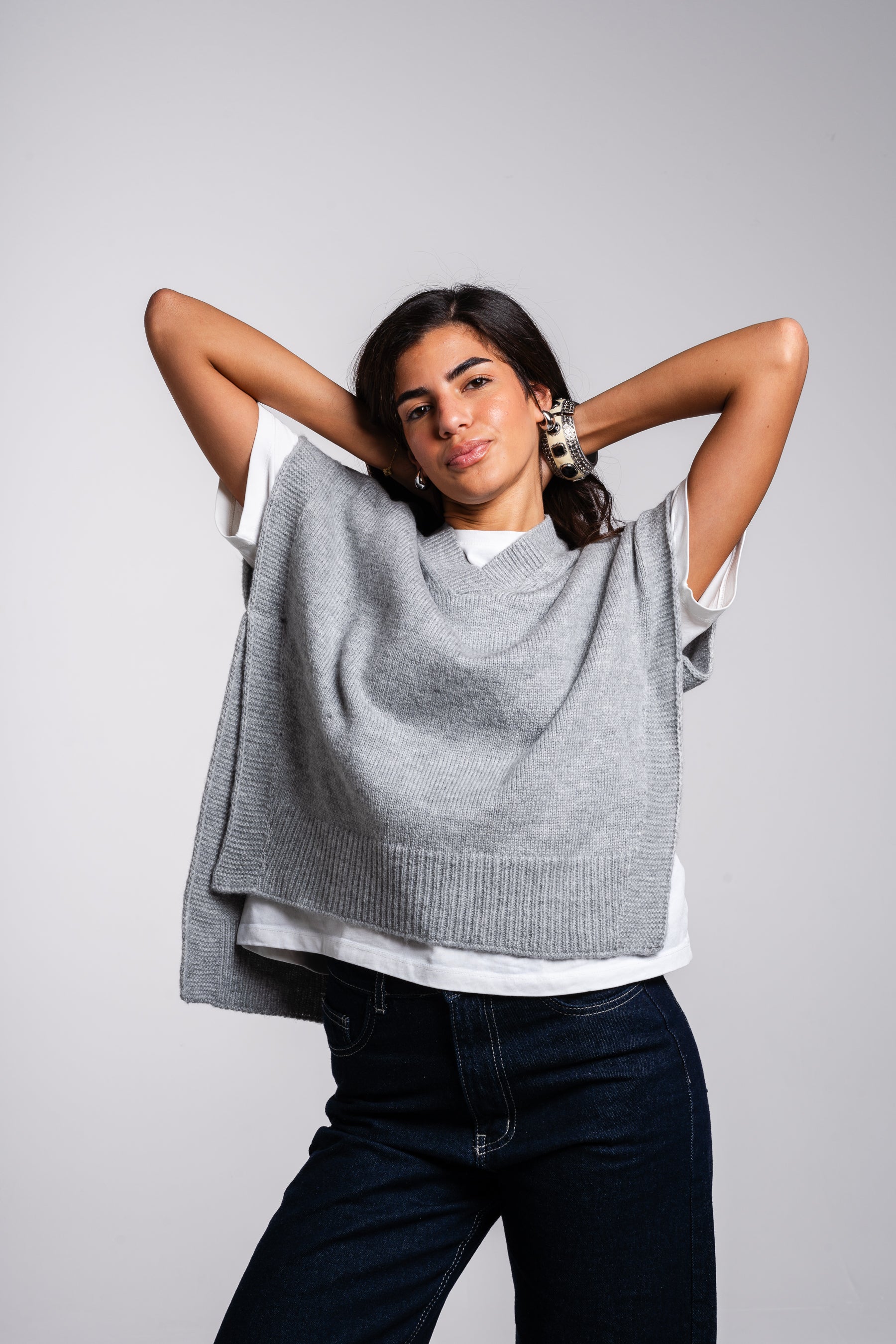 The one piece that makes any outfit look intentional. Perfect for those nights that start early and end late. Relaxed, oversized knit vest with an easy drape.