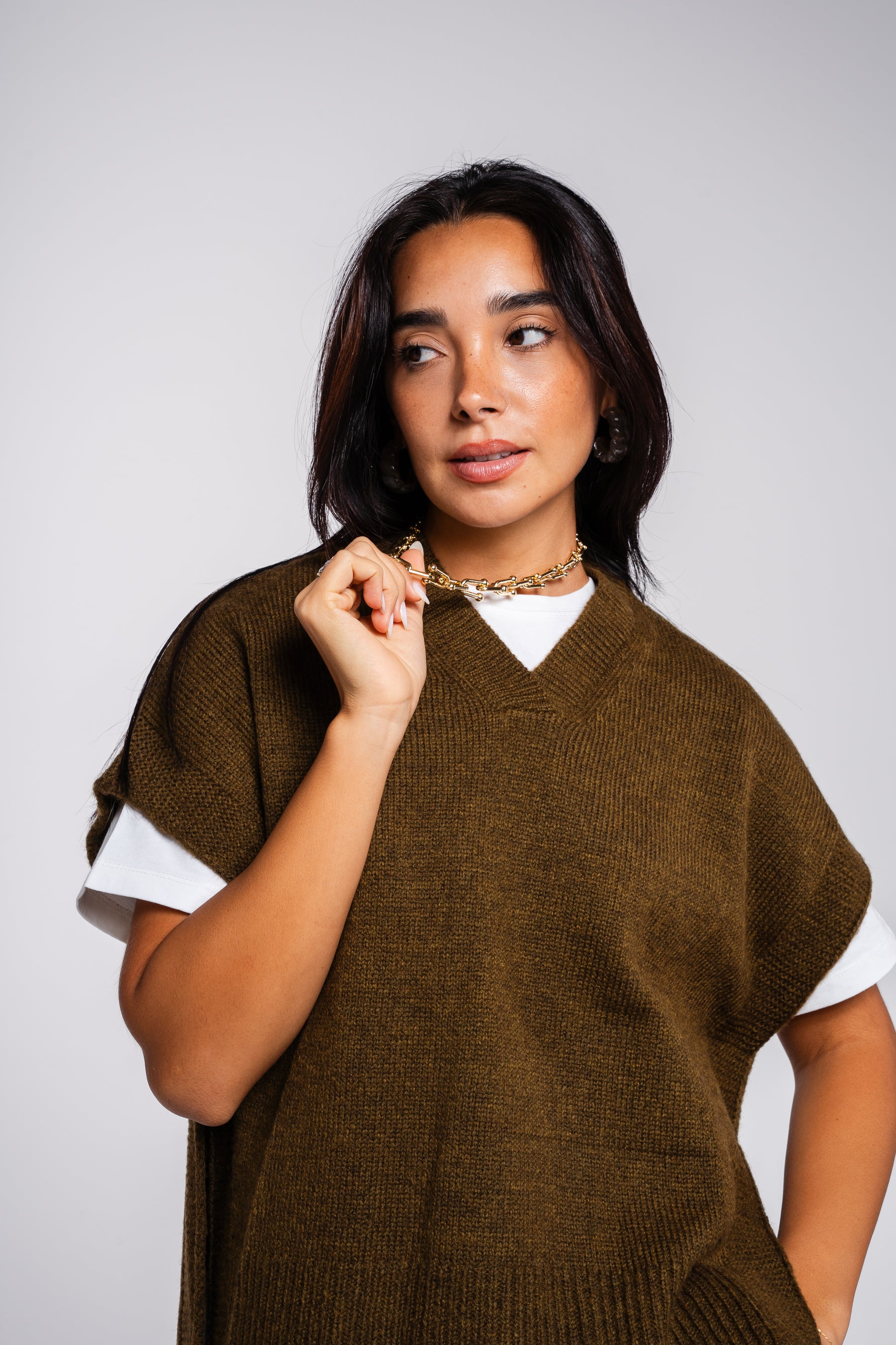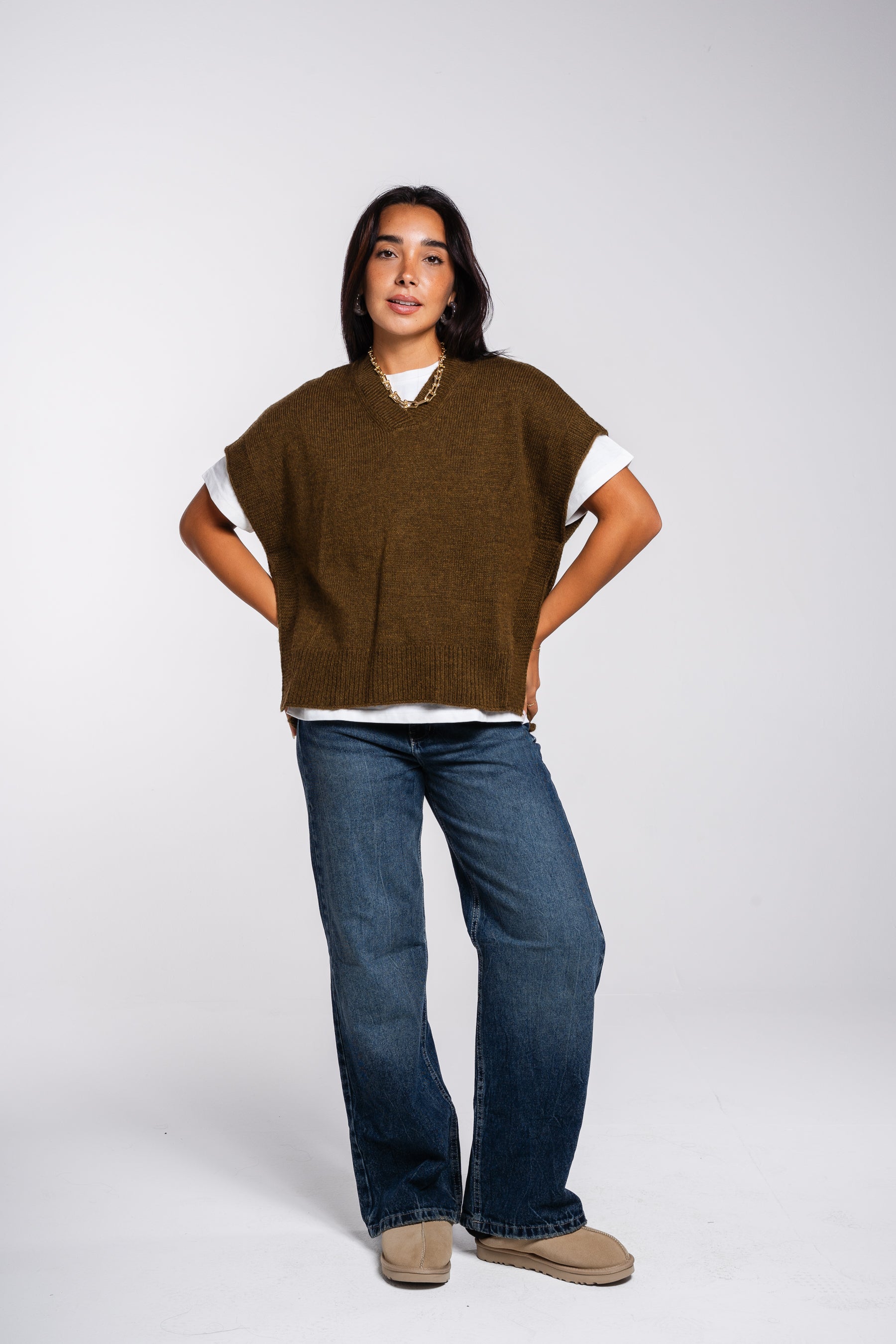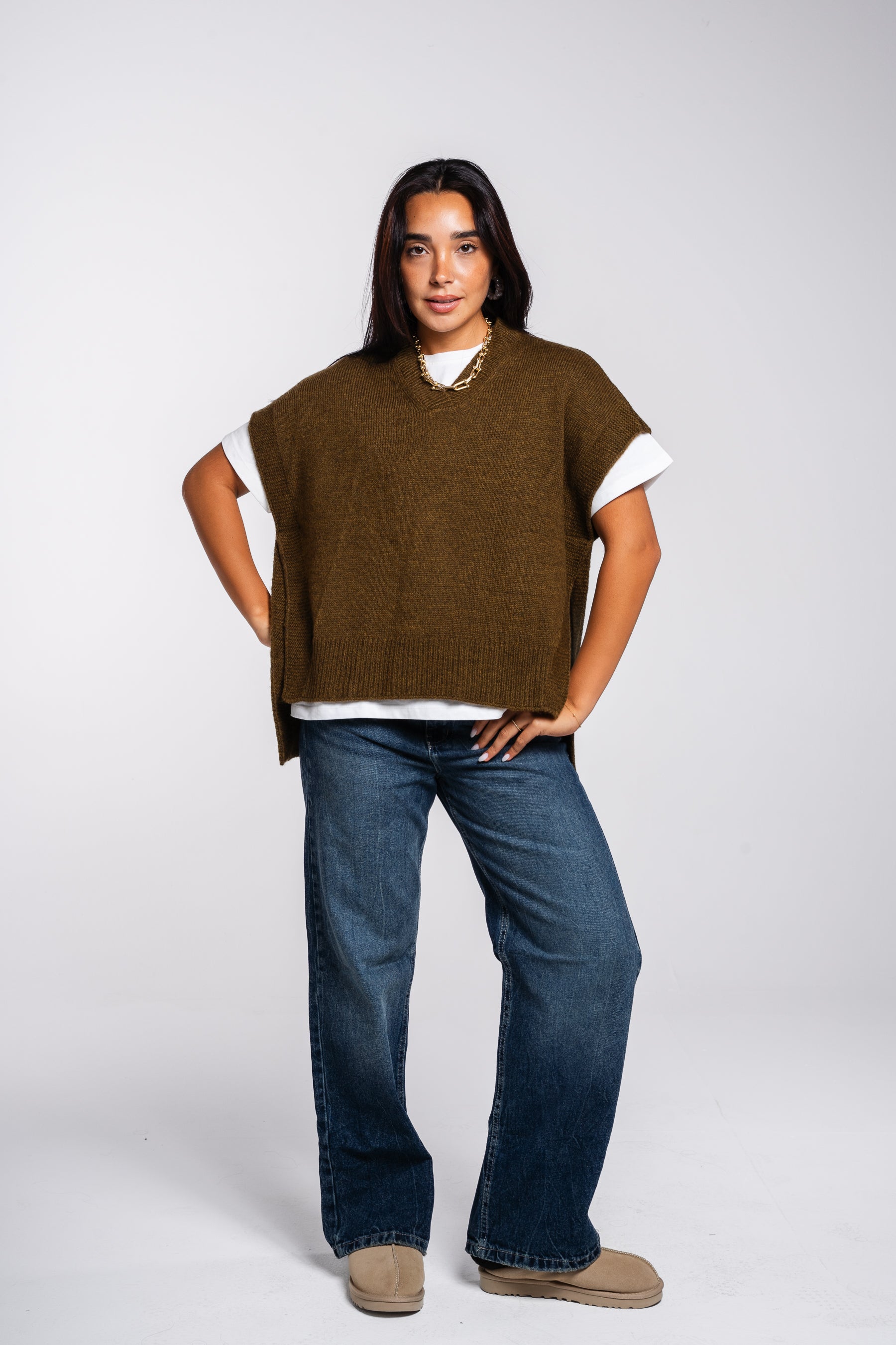 The one piece that makes any outfit look intentional. Perfect for those nights that start early and end late. Relaxed, oversized knit vest with an easy drape.