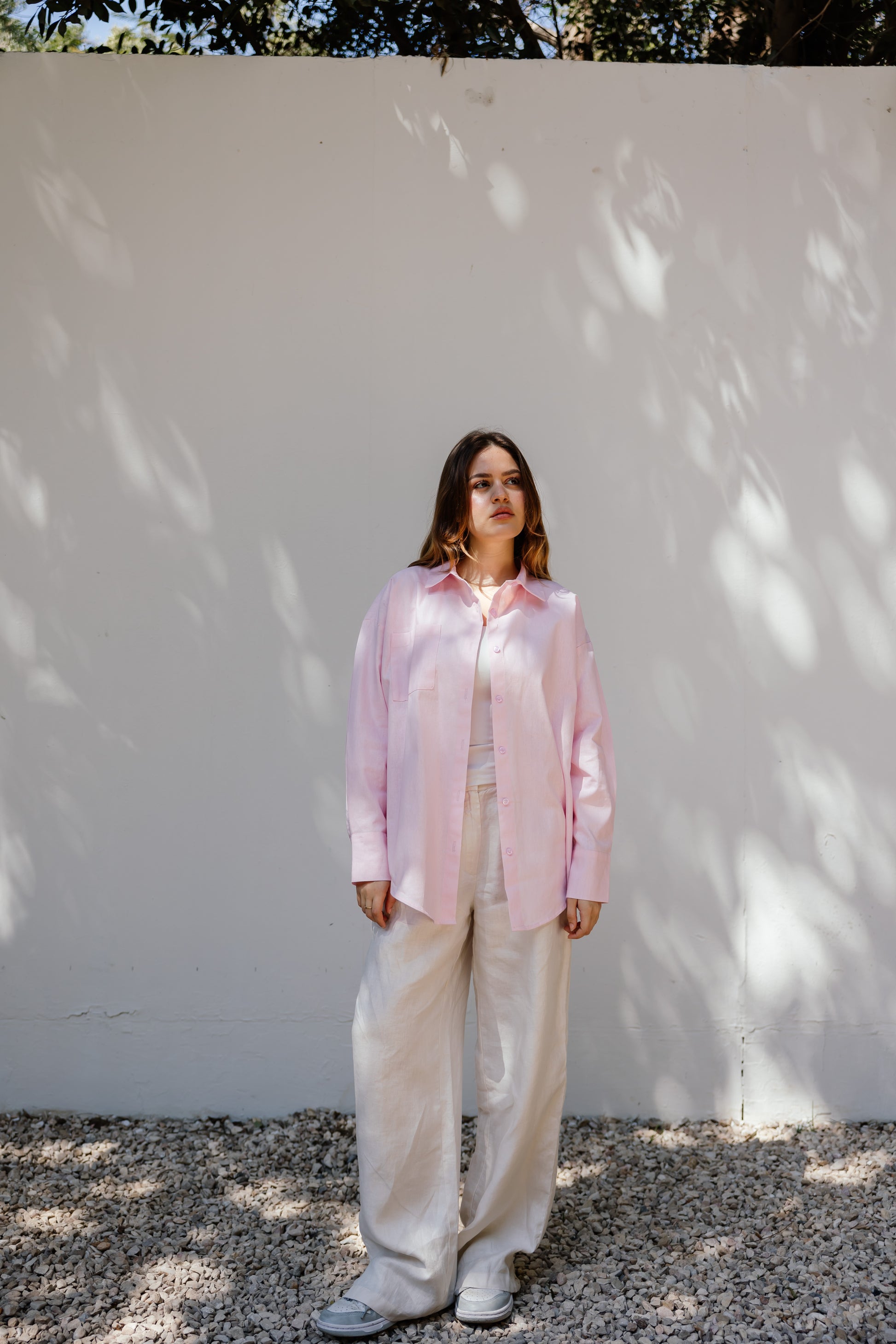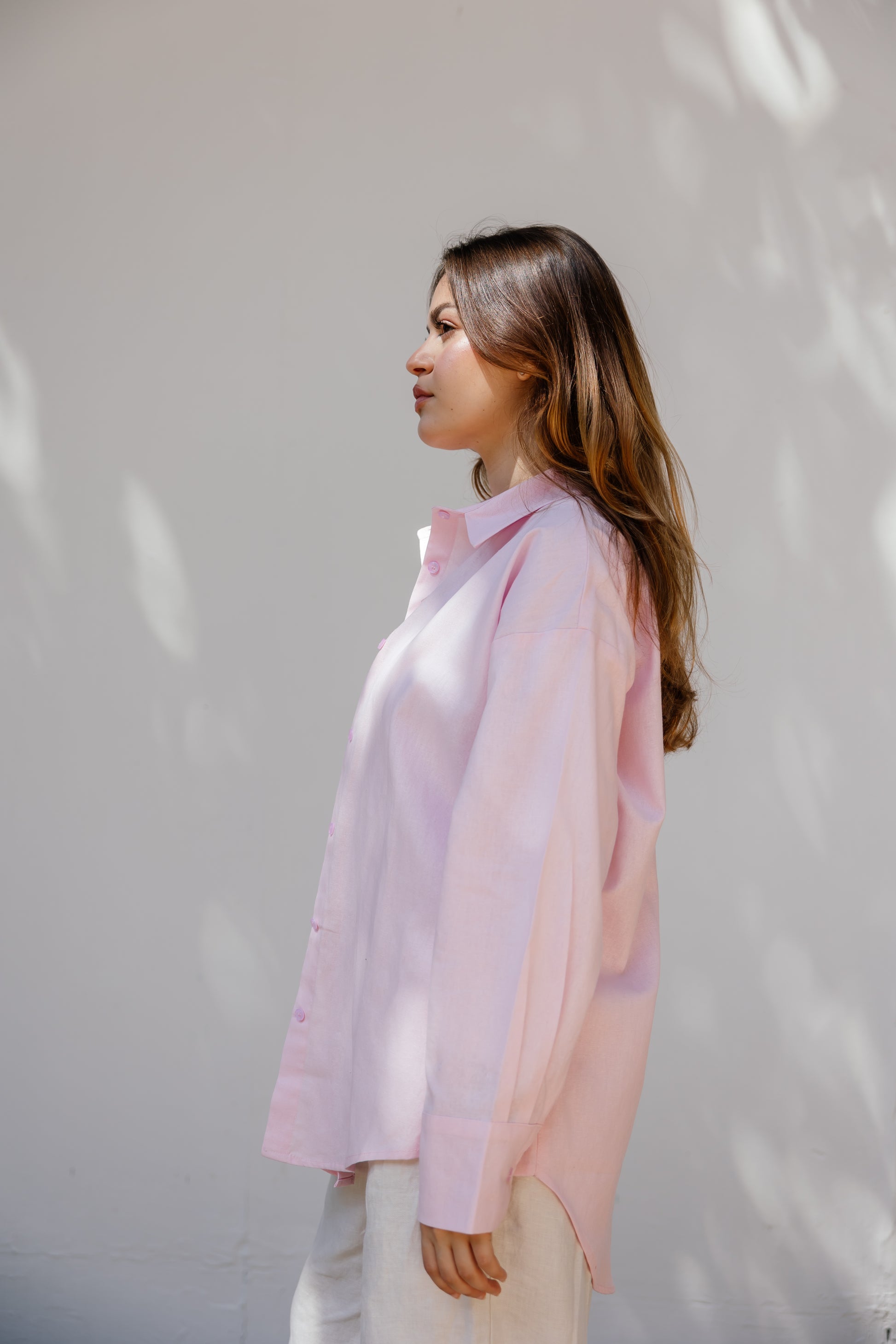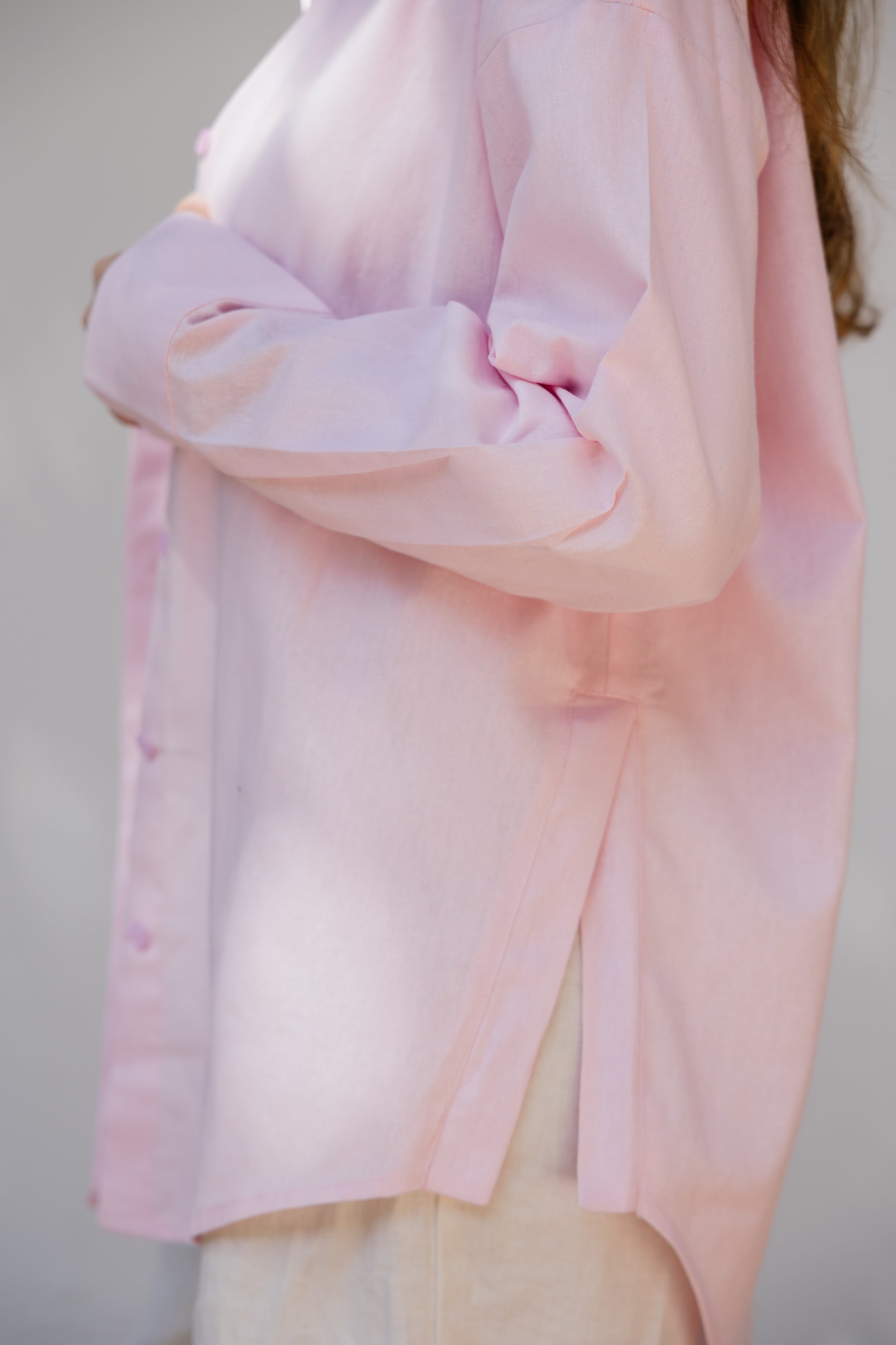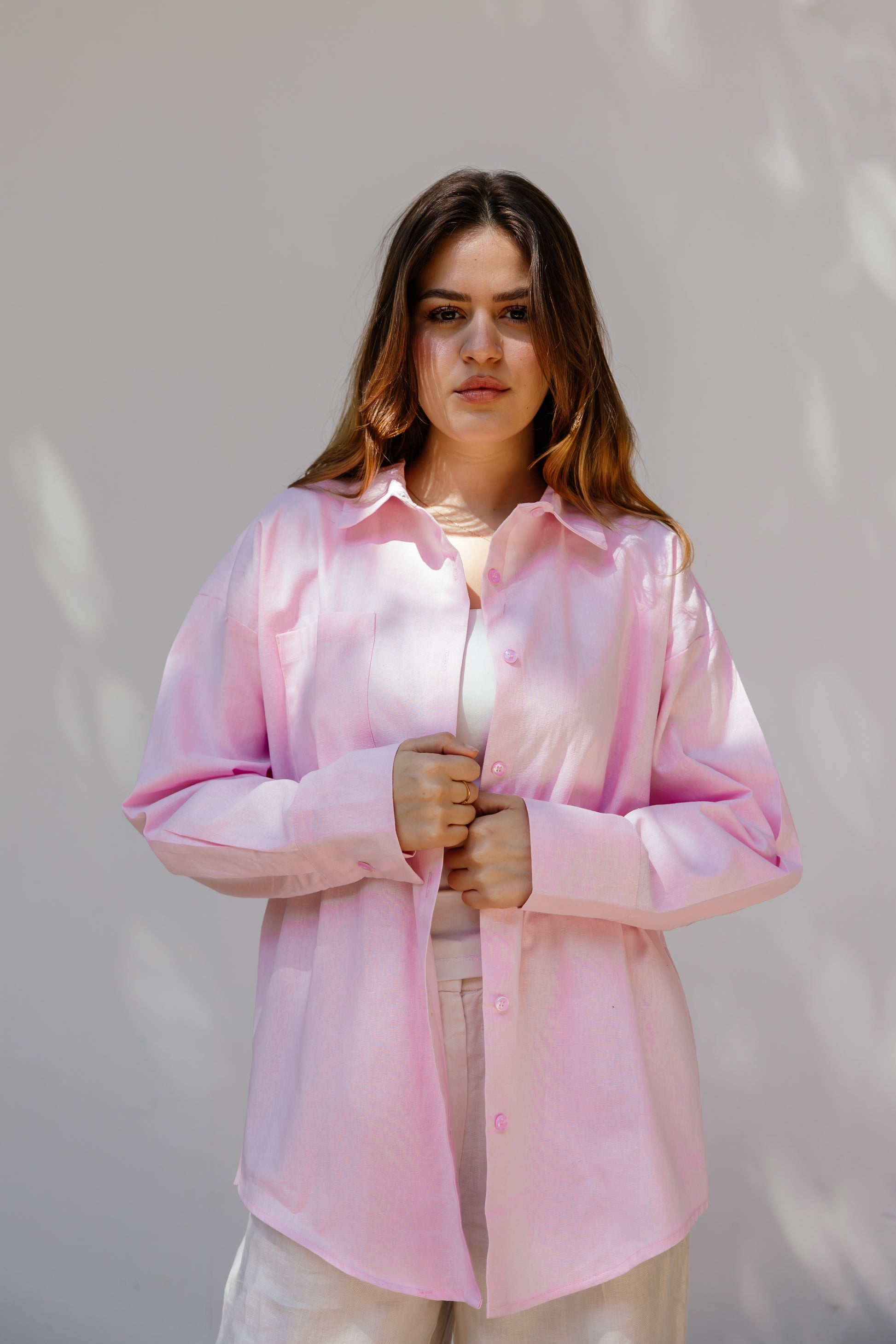Breathable and chic, this linen shirt features a stylish side slit for effortless movement and elegance.