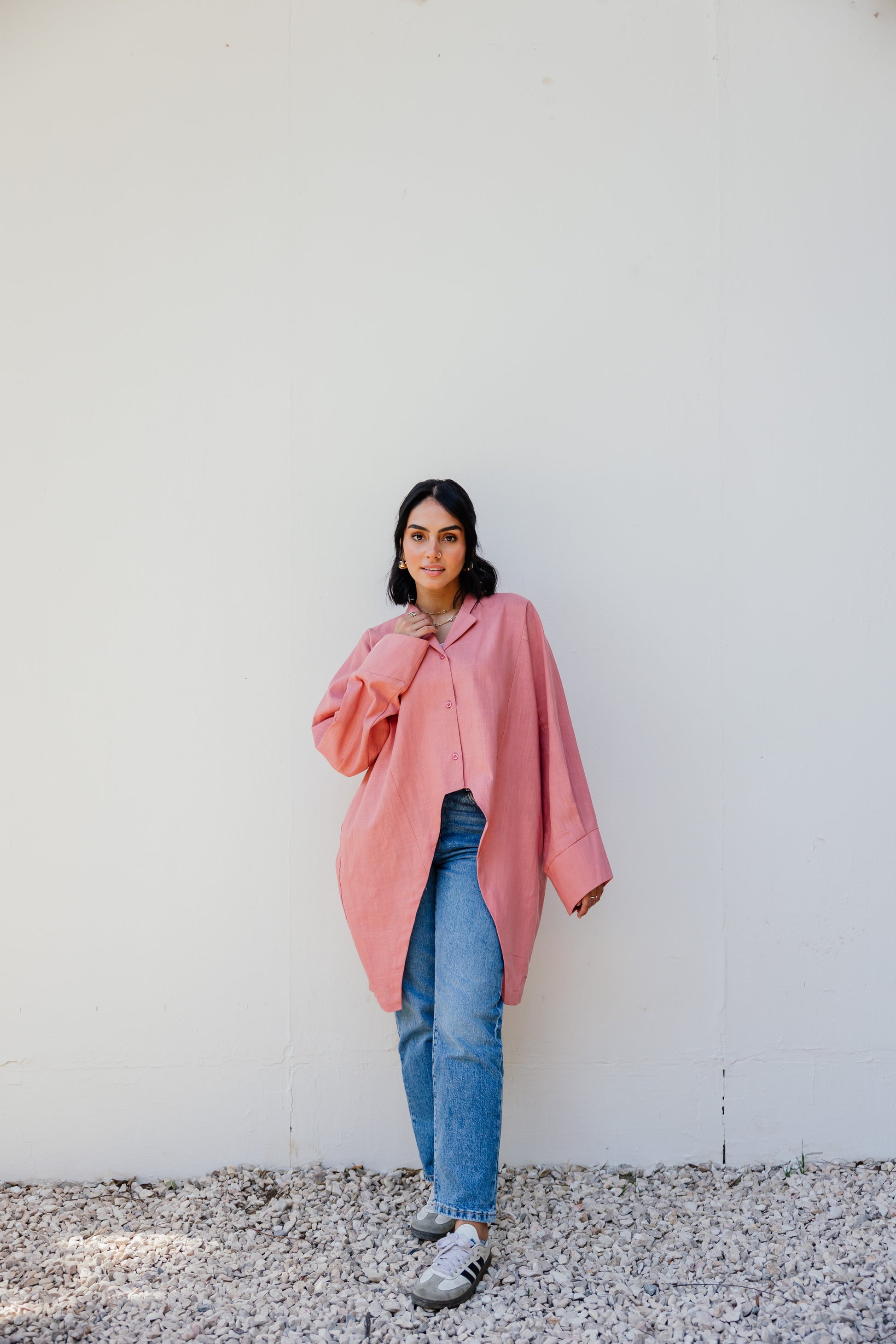 Lightweight and stylish, this high-low linen blouse offers effortless elegance for any occasion.