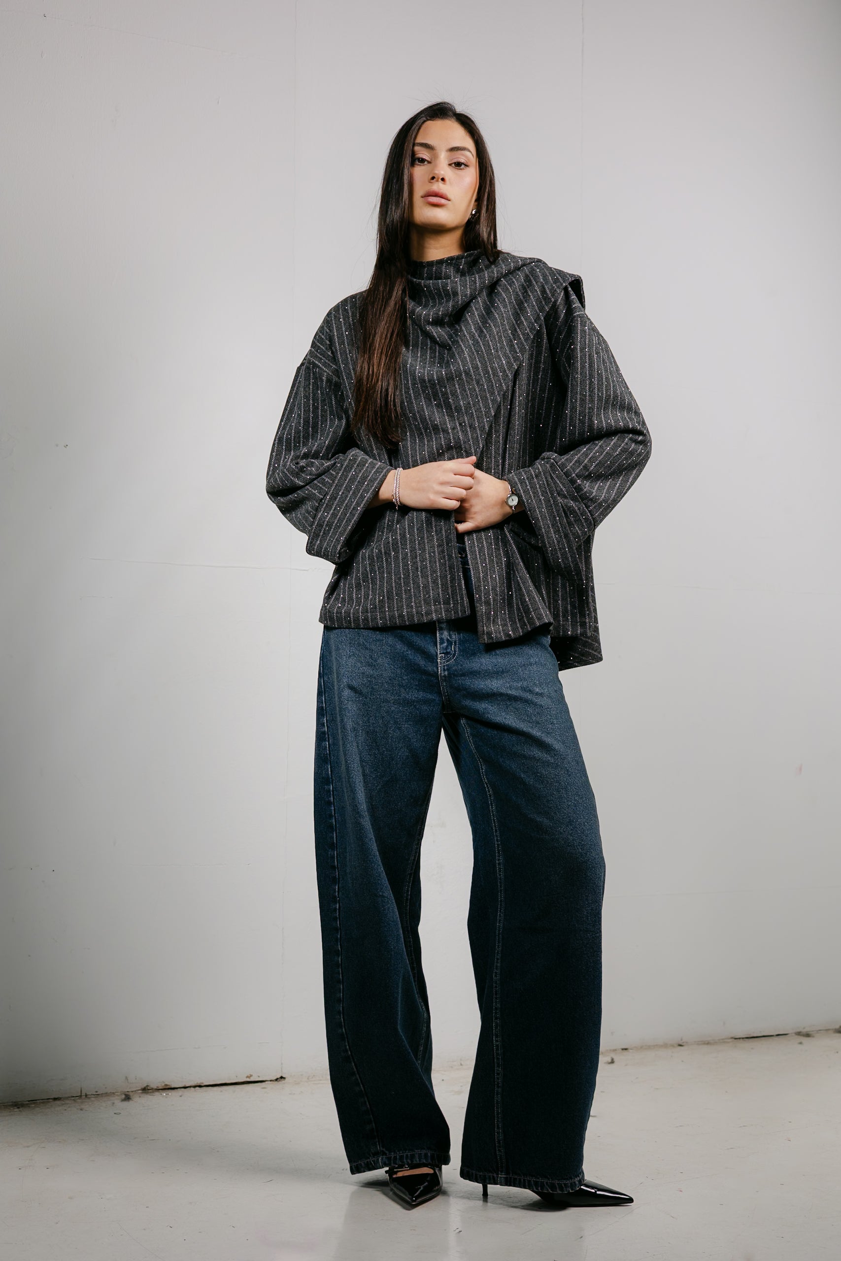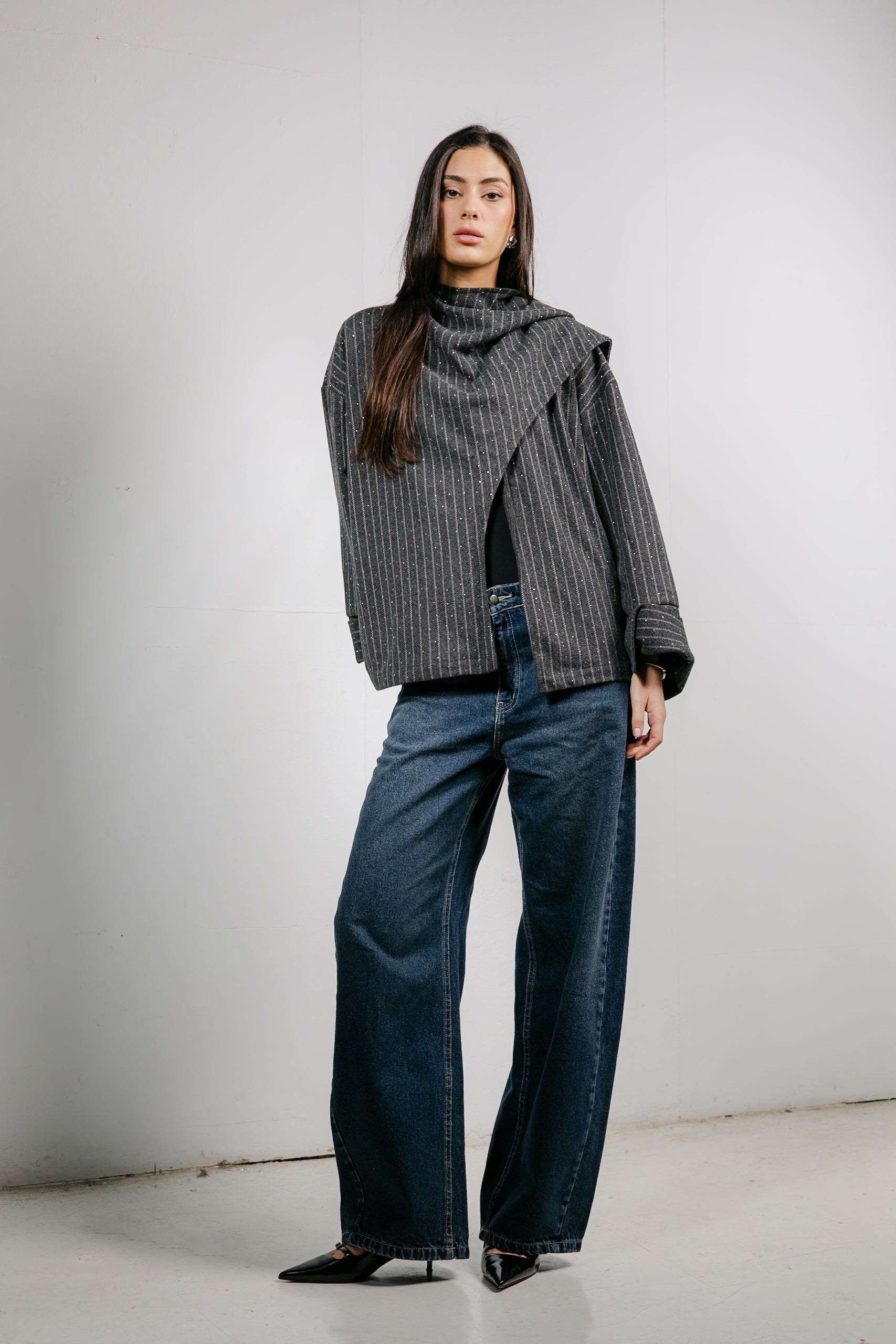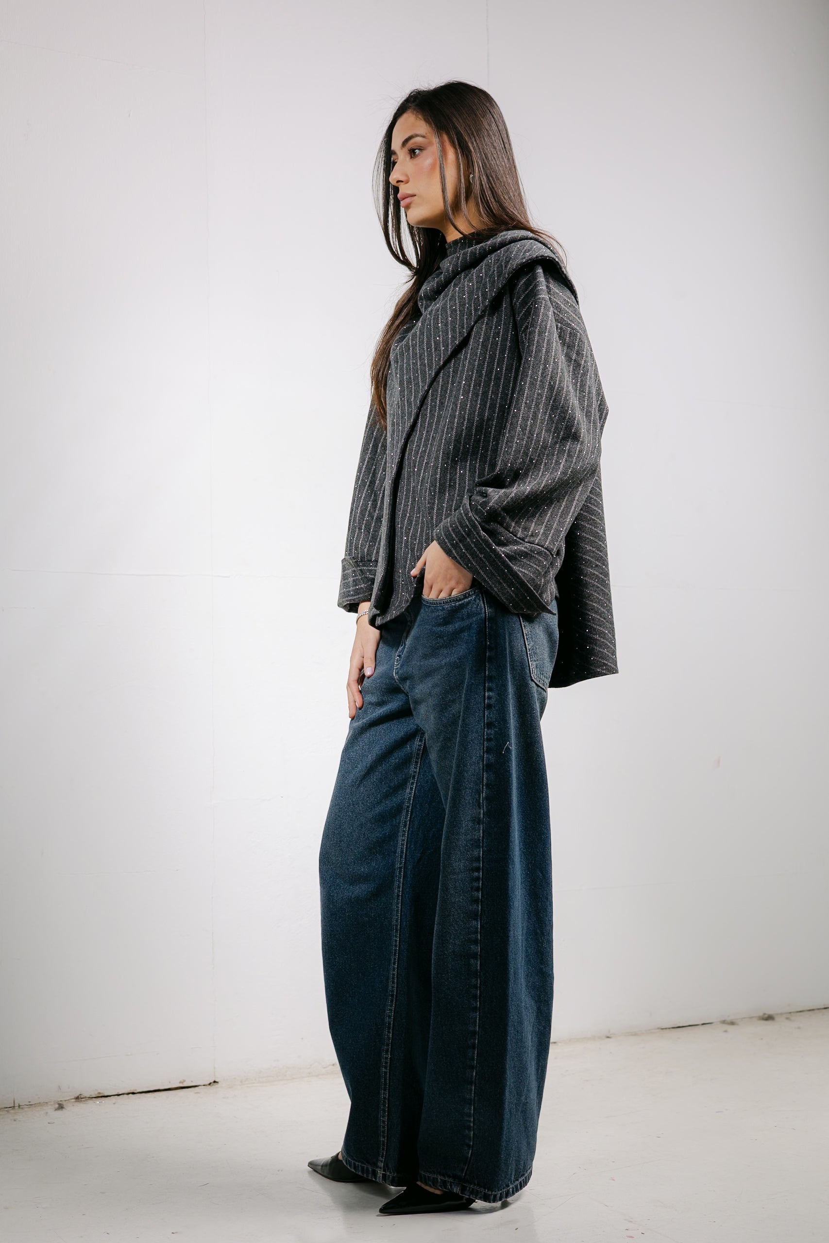 Bold and brilliant, this jacket features premium studded accents that provide a touch of glamour. It's the perfect way to add texture and shine to your evening ensemble.