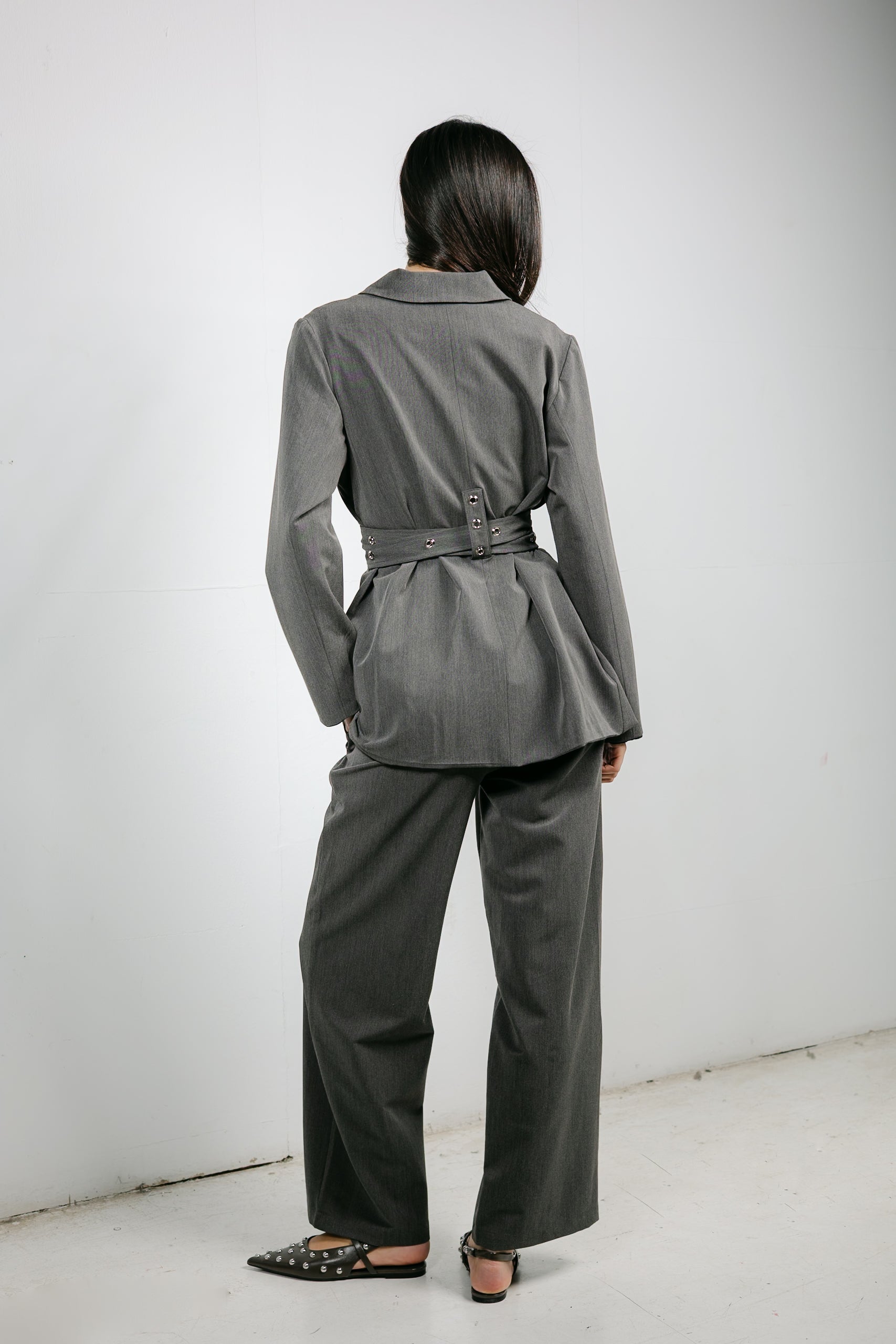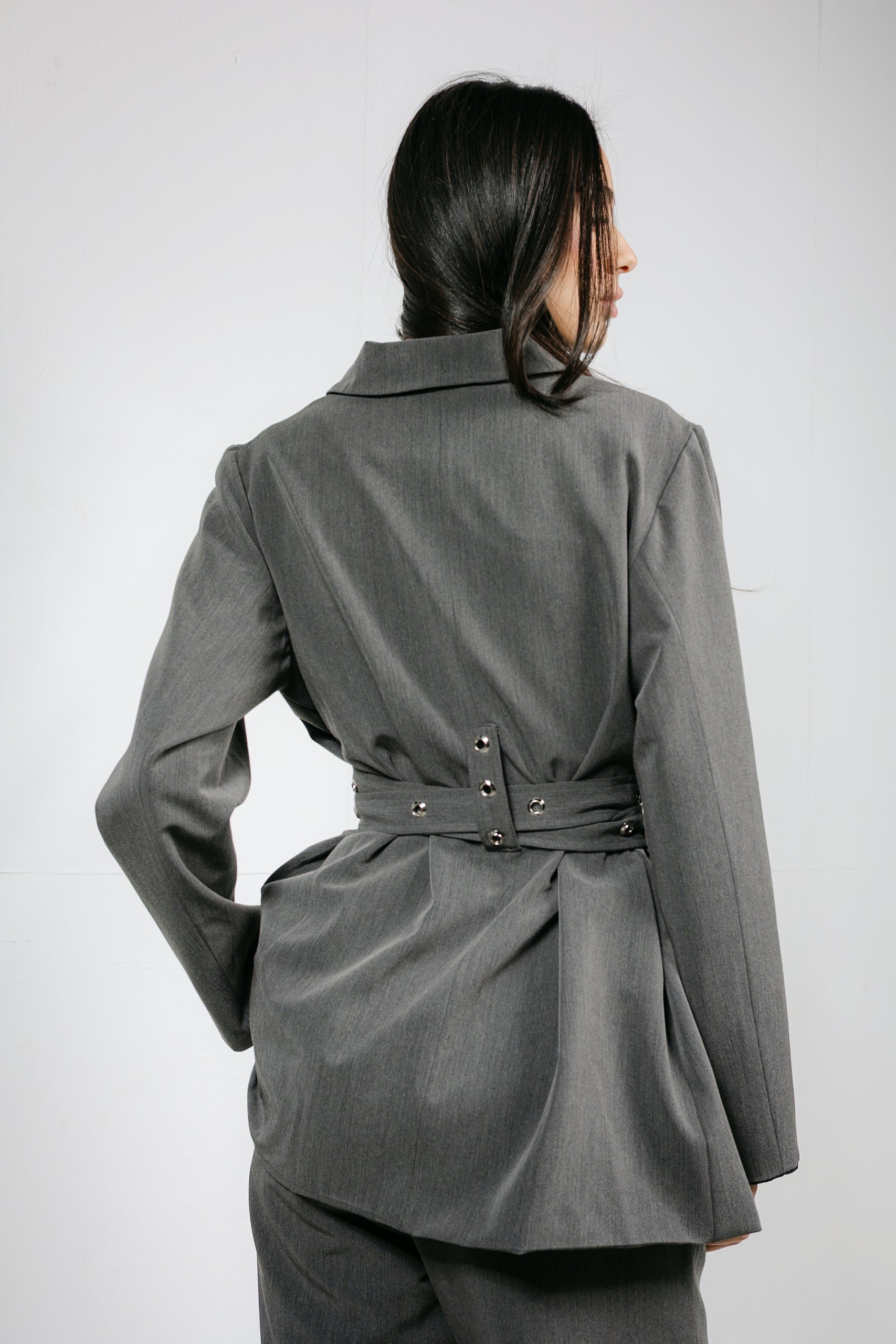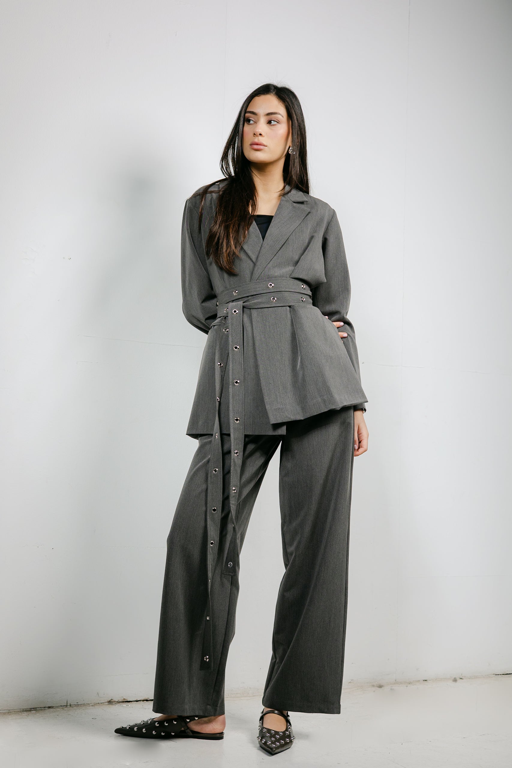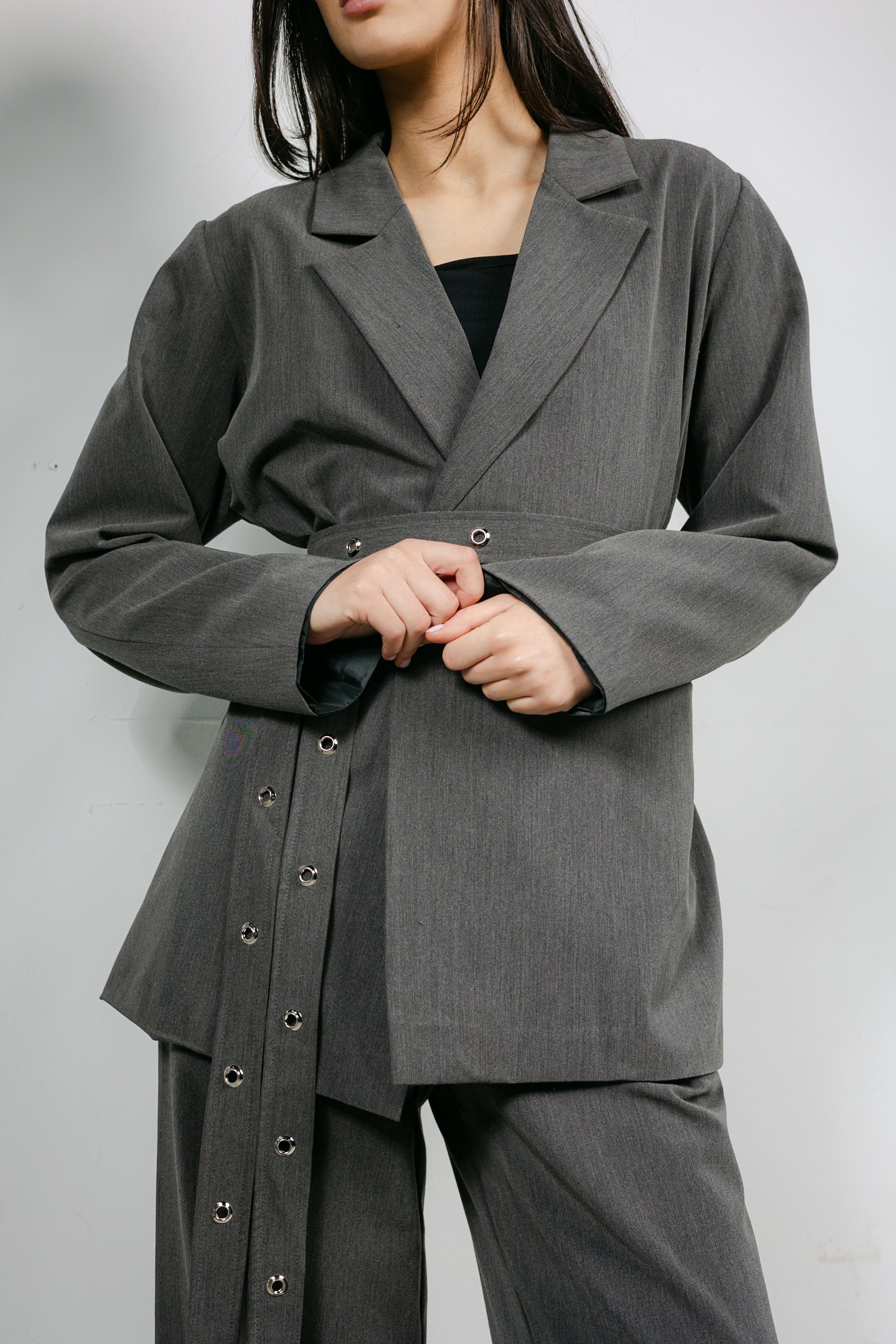 A stunning ensemble that blends professional tailoring with eye-catching flair. This set features unique metallic "Silver Bell" accents, making it perfect for the office or an event.