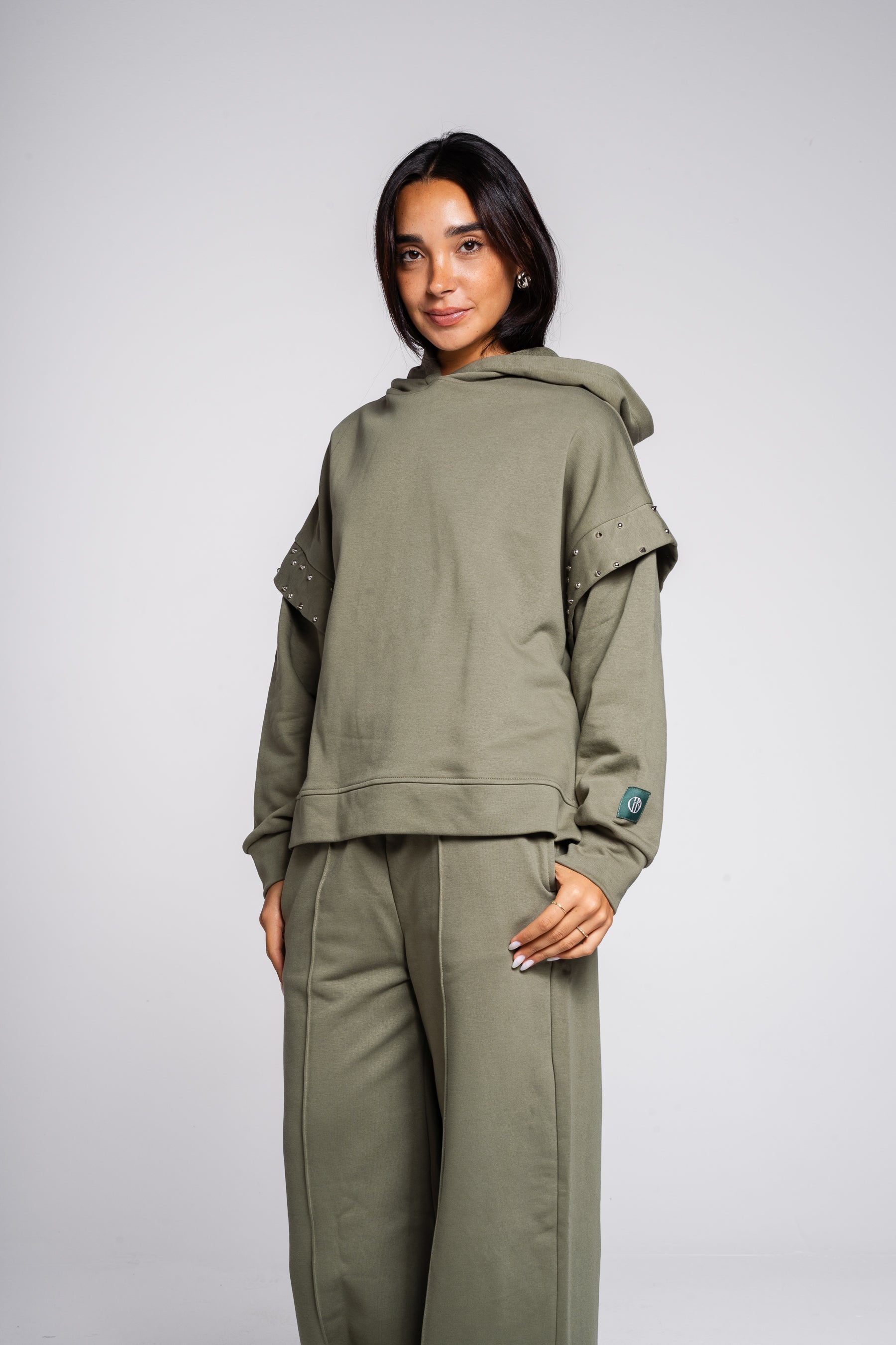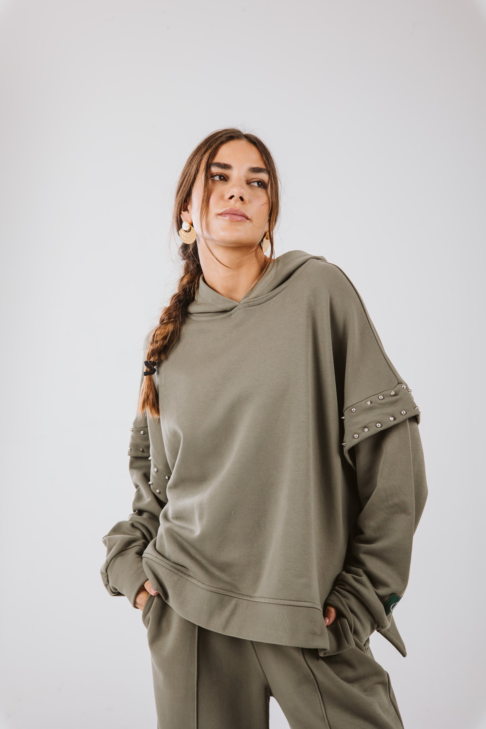The staple you'll reach for every time you leave the house. It's the perfect amount of warmth, style. Generous, hooded knit pullover with detailing features.
