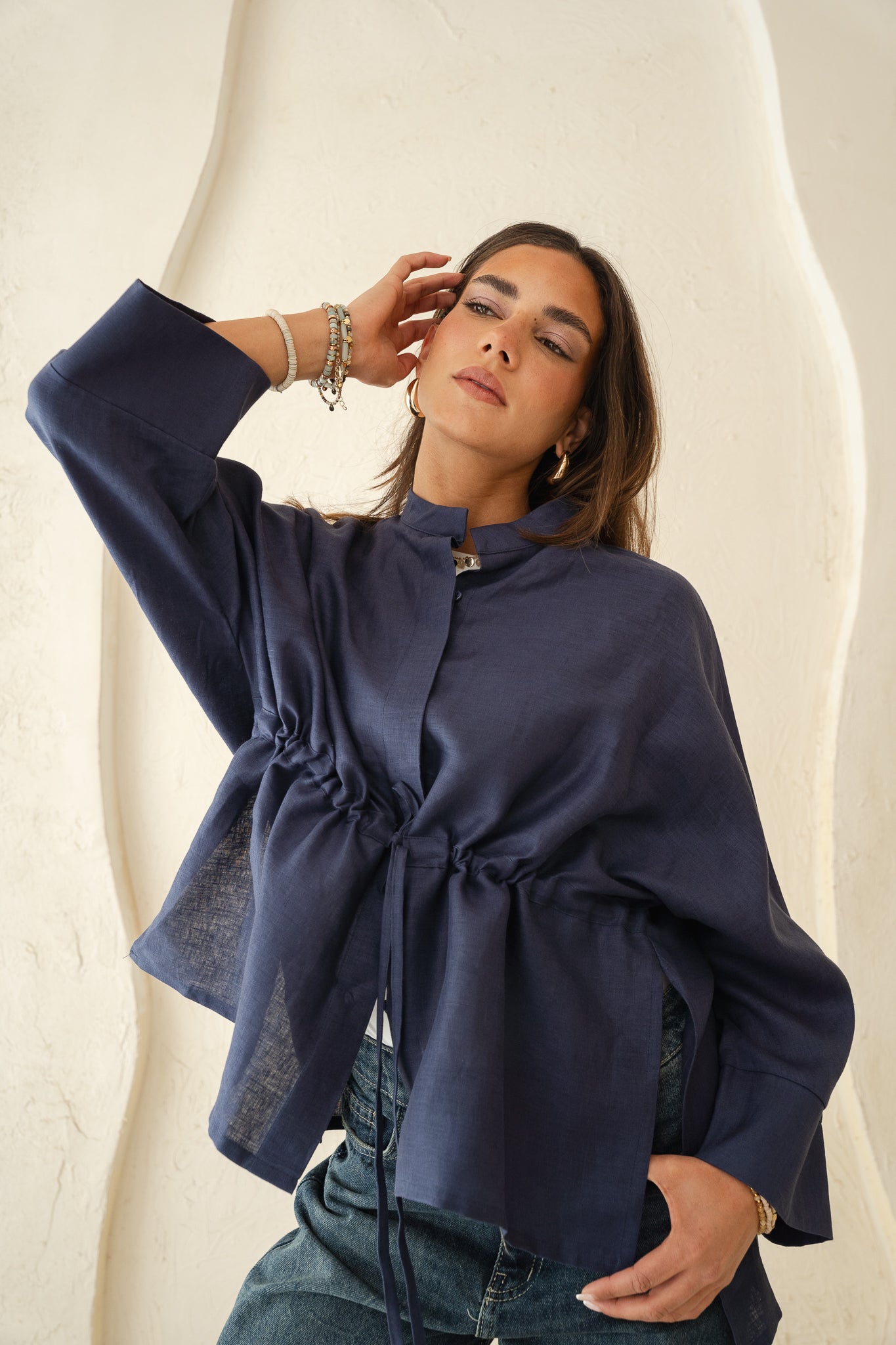 A breathable linen blouse made for warm days and effortless styling. Its relaxed silhouette makes it a staple piece for both casual and dressed-up looks.