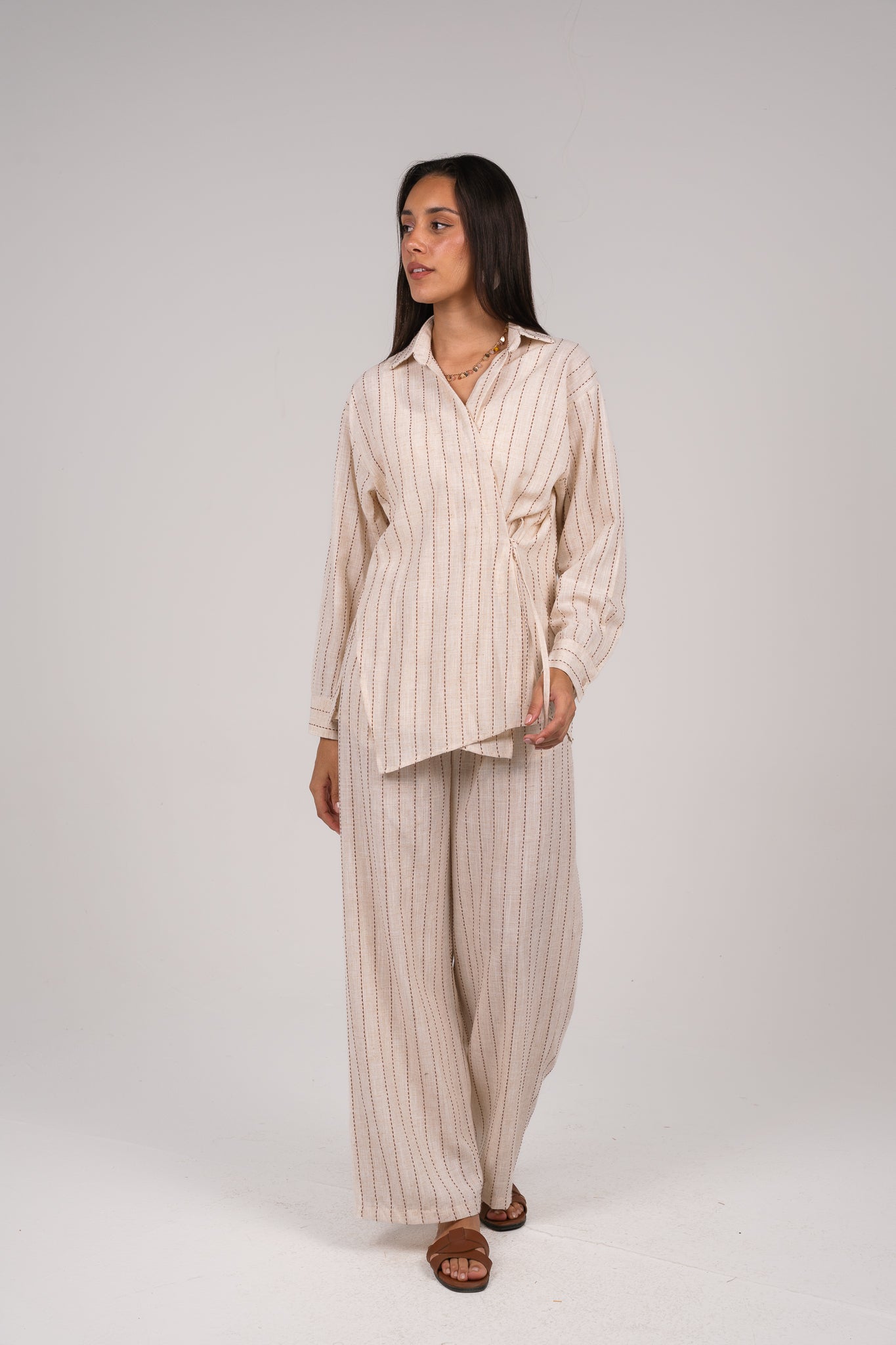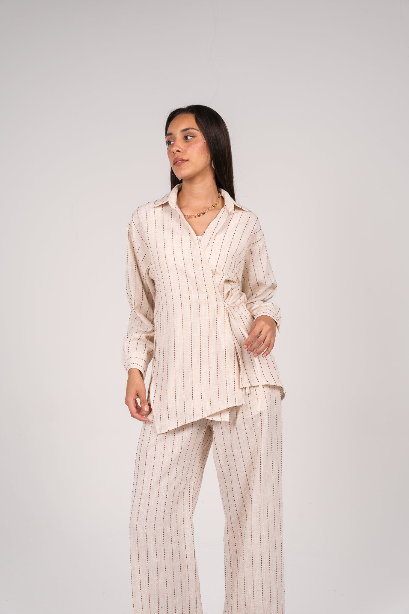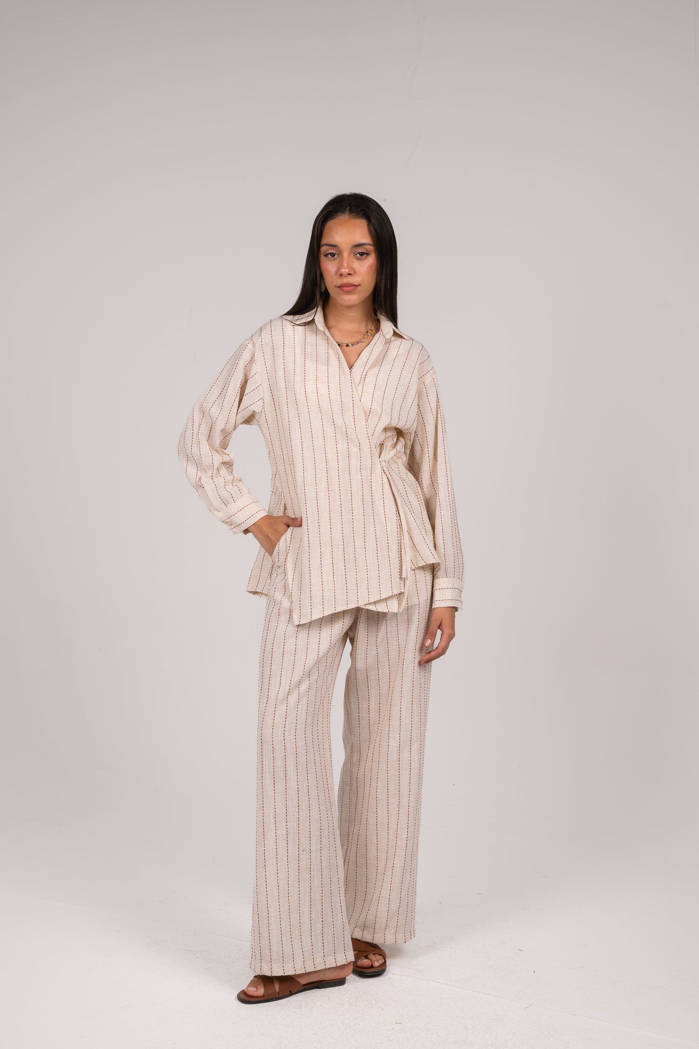 Our striped linen sets blend comfort with style—perfect for warm days and breezy evenings. Whether you go for the cinched waist detail or the relaxed wrap cut, both styles offer timeless versatility and breathable charm.