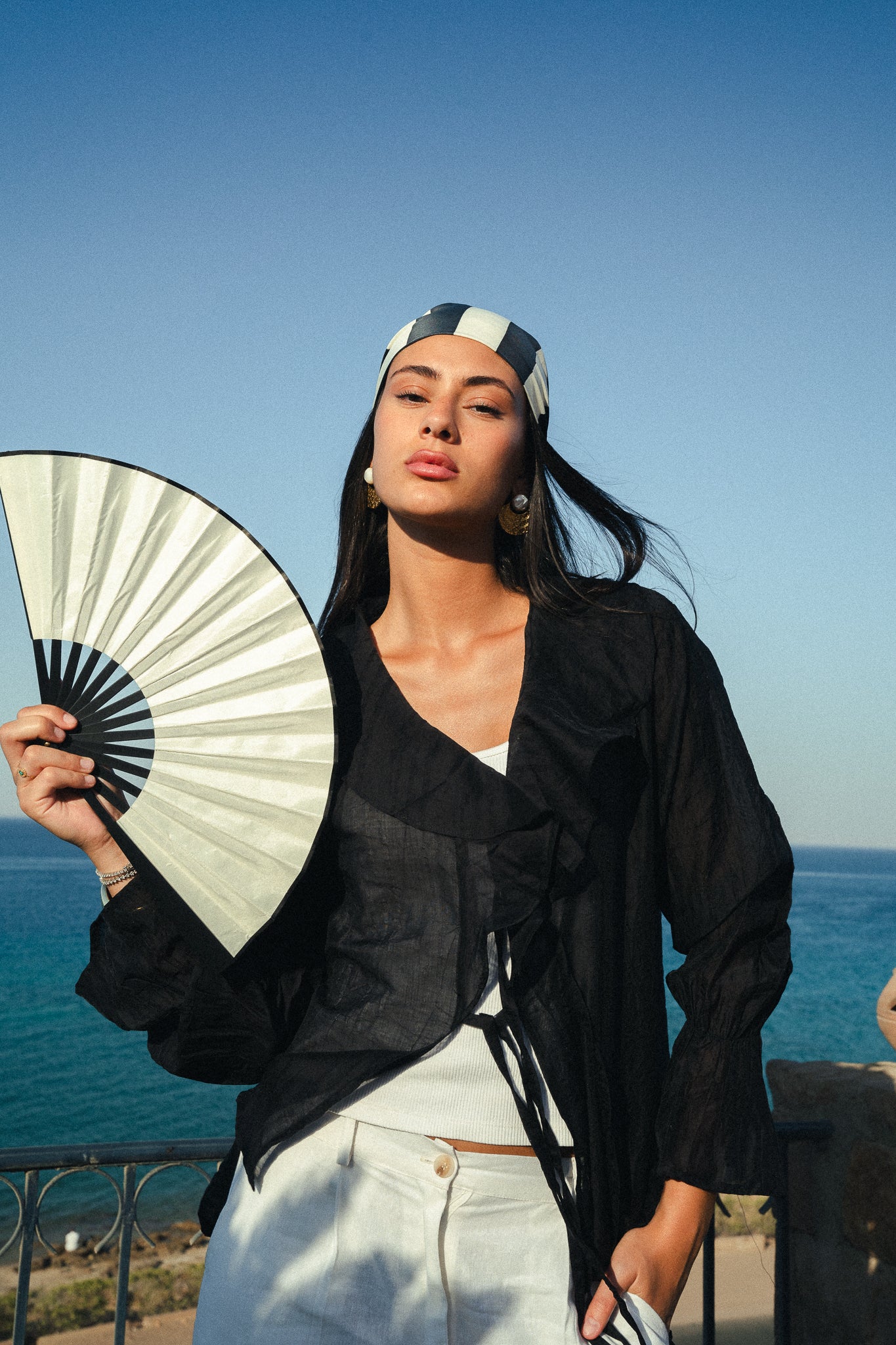 Soft, feminine, and effortlessly elevated — this ruffled blouse adds a touch of movement and charm to any look. Designed for those who love subtle drama, it pairs beautifully with denim, tailored pants, or flowy skirts. Dress it up or down — it’s a timeless piece that speaks volumes.